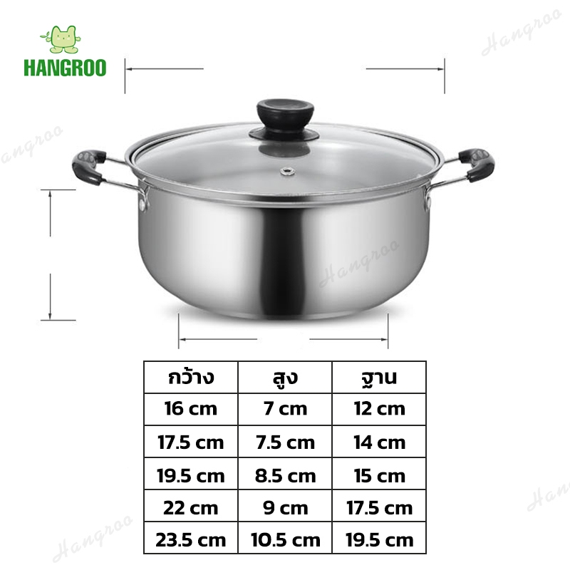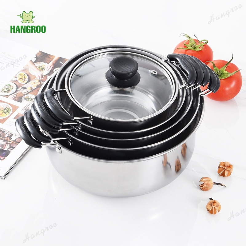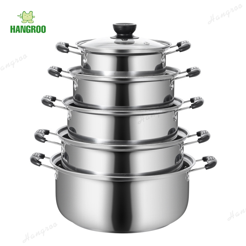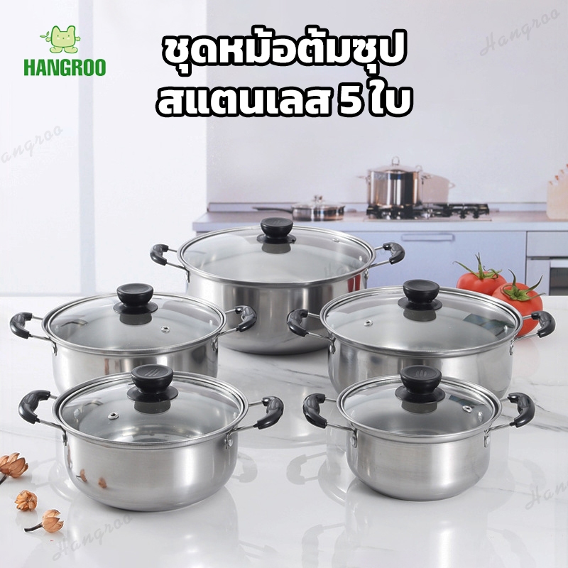 HANGROO S829 POT ชุดหม้อสแตนเลส 5ใบ 5ขนาด พร้อมฝาปิด 16/18/20/22/24cm.