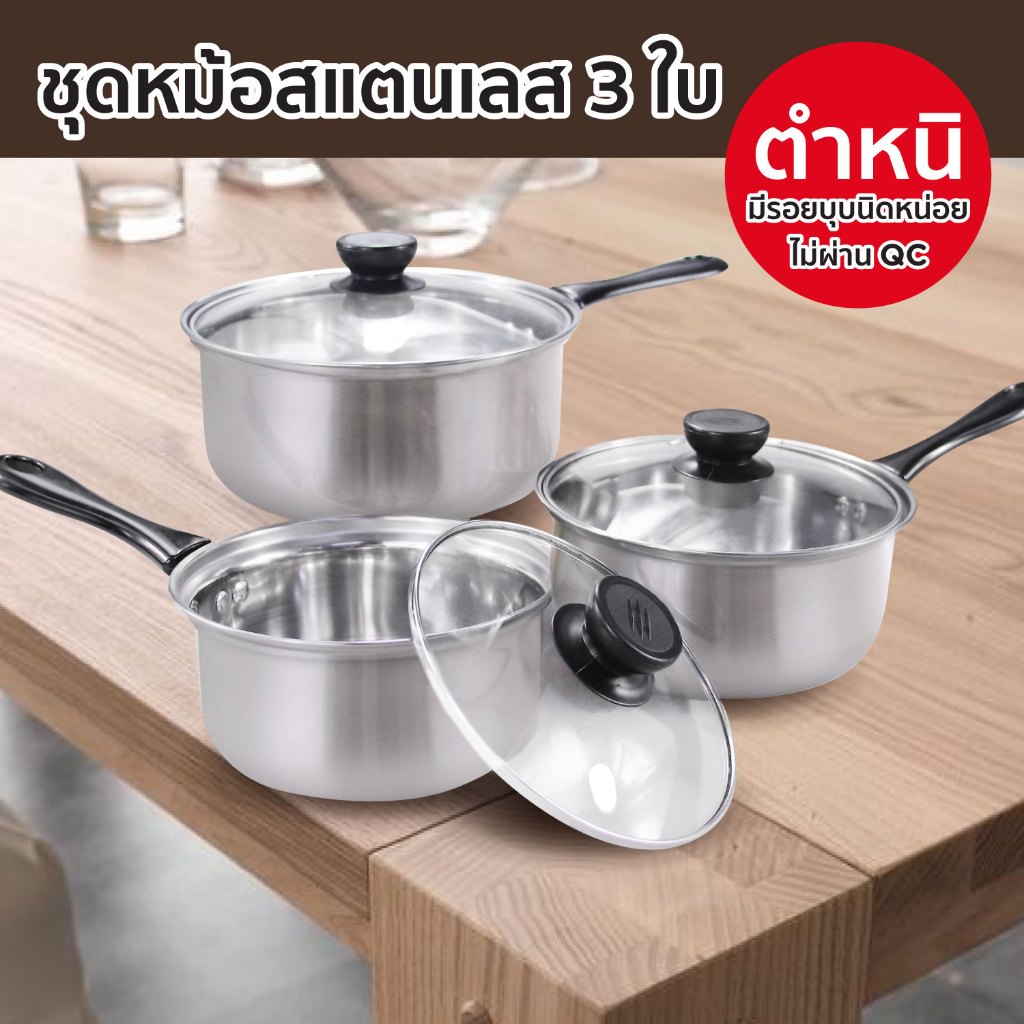 (ตำหนิ) หม้อสแตนเลส MP-03 หม้อ สแตนเลส หม้อต้ม หม้อมีด้ามจับ ชุดหม้อสแตนเลส เครื่องครัว (ขนาด 15/17/19)