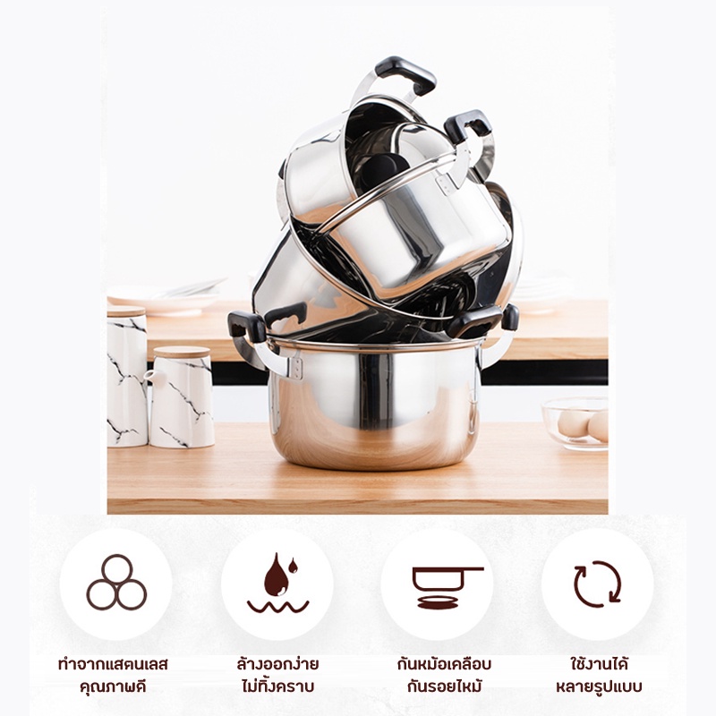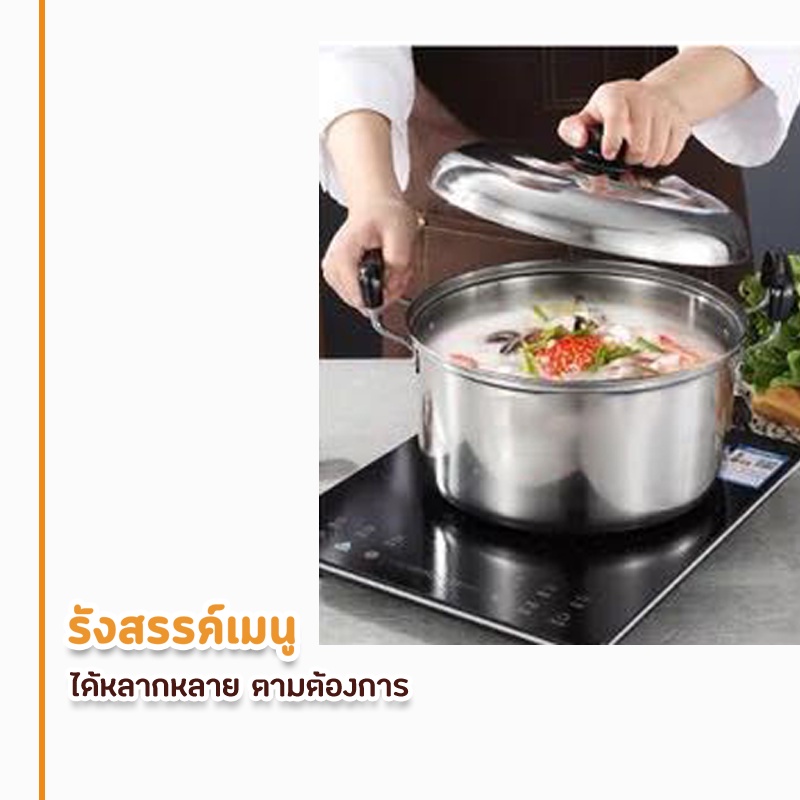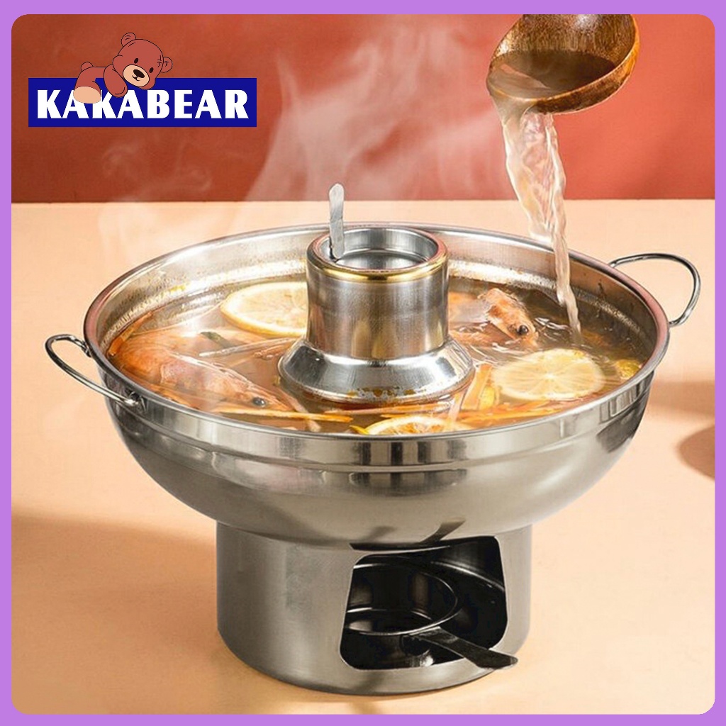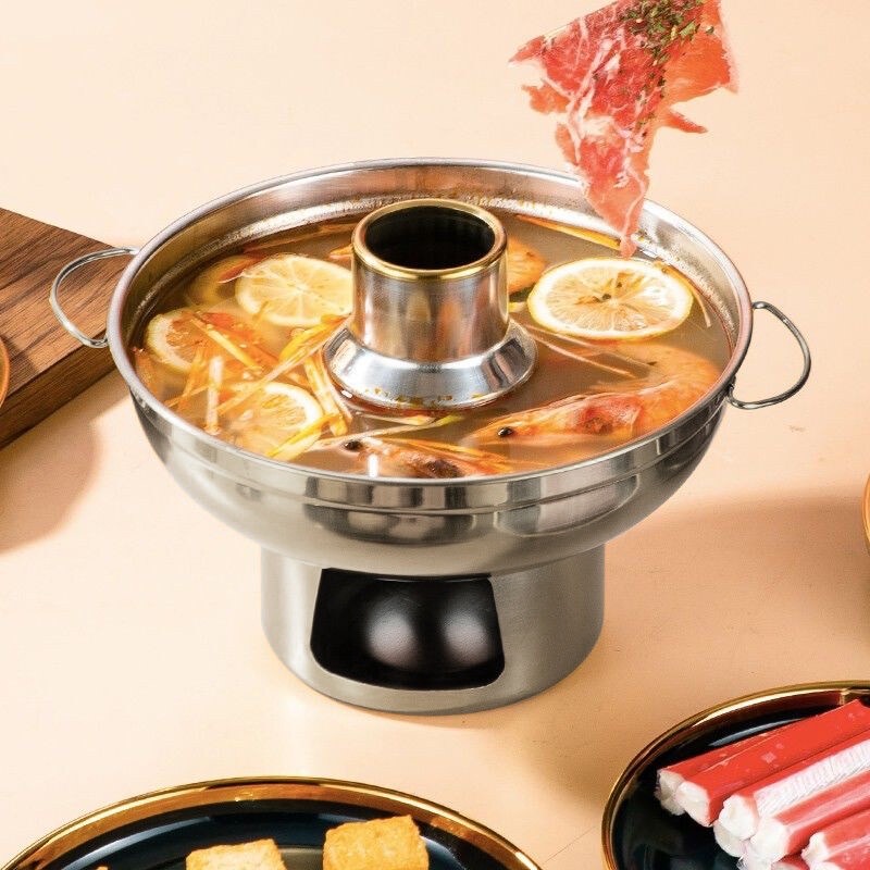 หม้อไฟต้มยำสแตนเลส หม้อไฟไทย เหมาะสำหรับครอบครัวและร้านอาหาร ใช้กับเตาแอลกอฮอล์ได้ ทนทานหนาพิเศษ กระจายความร้อนสม่ำเสมอ