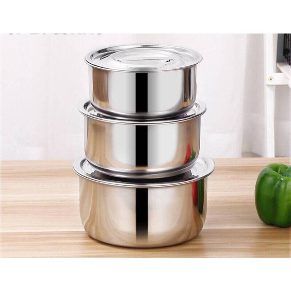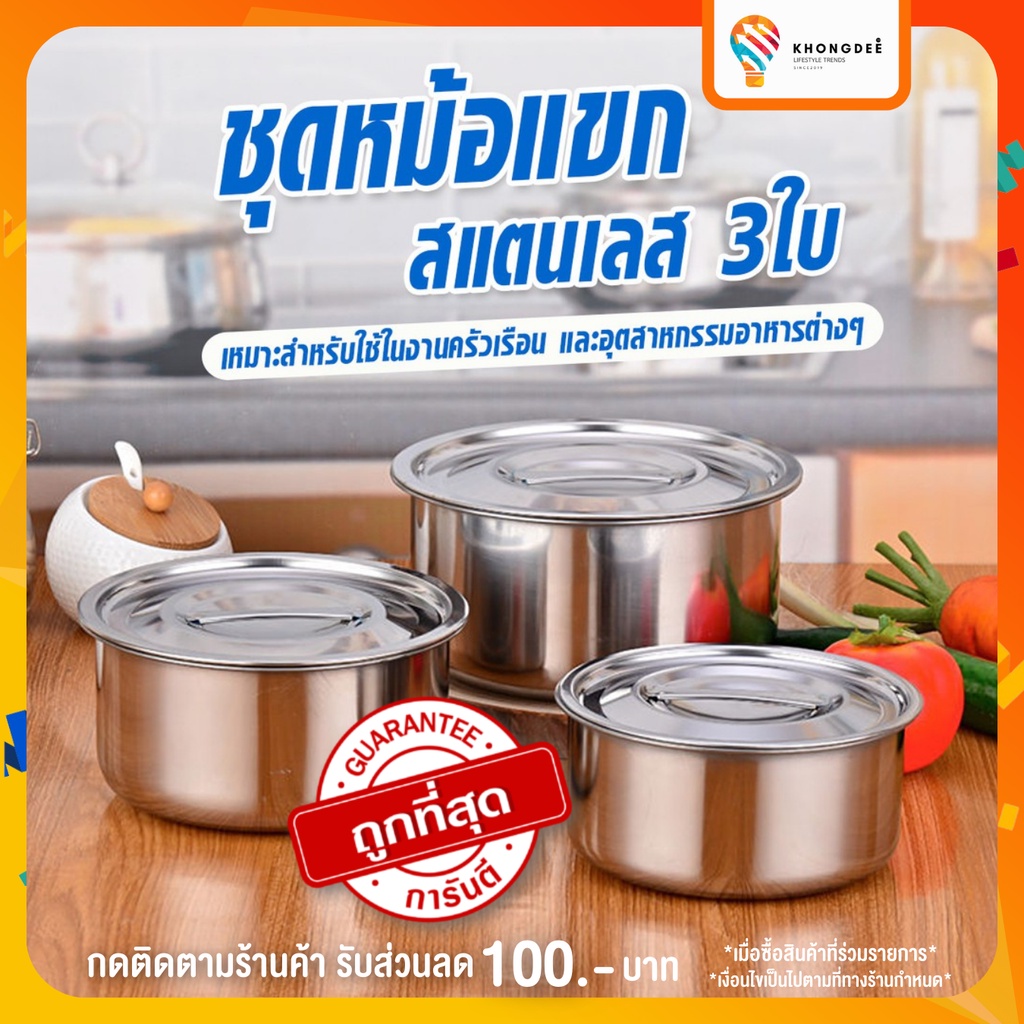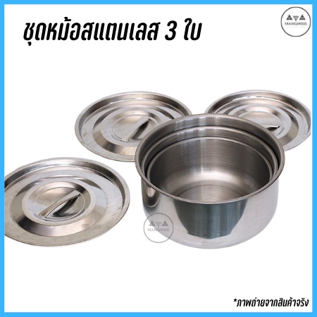 หม้อแขกสแตนเลส หม้อสแตนเลส ชุดหม้อแขก 3 ใบ ขนาด 15/17/19 cm. รหัส KD-00074 (096)
