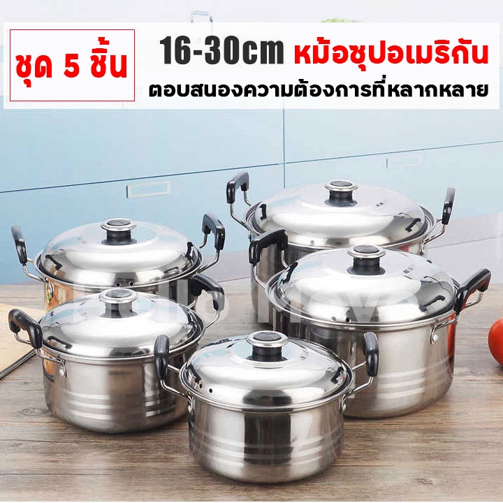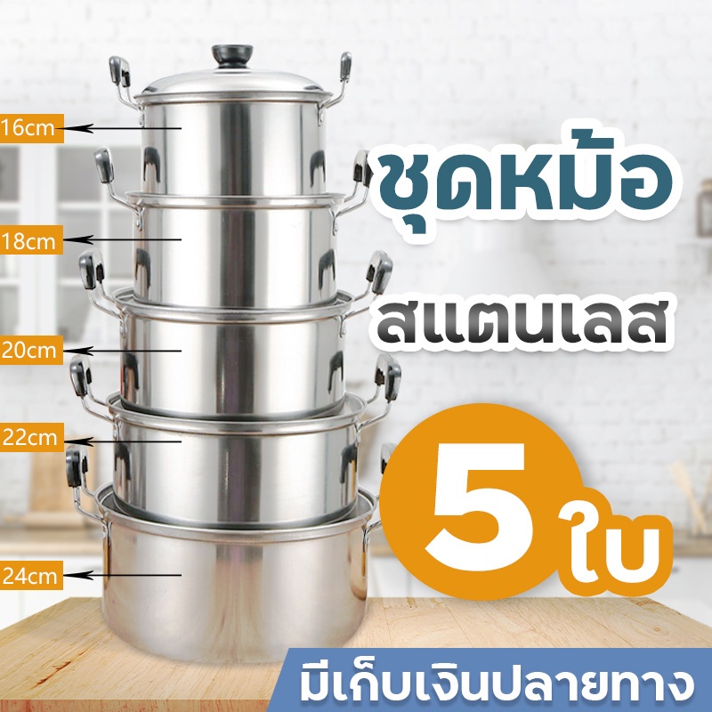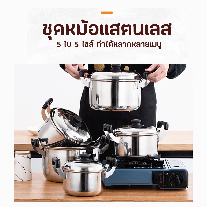 🔥1 แถม 2🔥ชุดหม้อสแตนเลส ชุดหม้อต้ม 5 ใบ หม้อแกง หม้อหูหิ้ว หม้อ2หู ชุดหม้อแขกหม้อแกงทำอาหาร หม้อถูกๆ เซตหม้อสแตนเลส