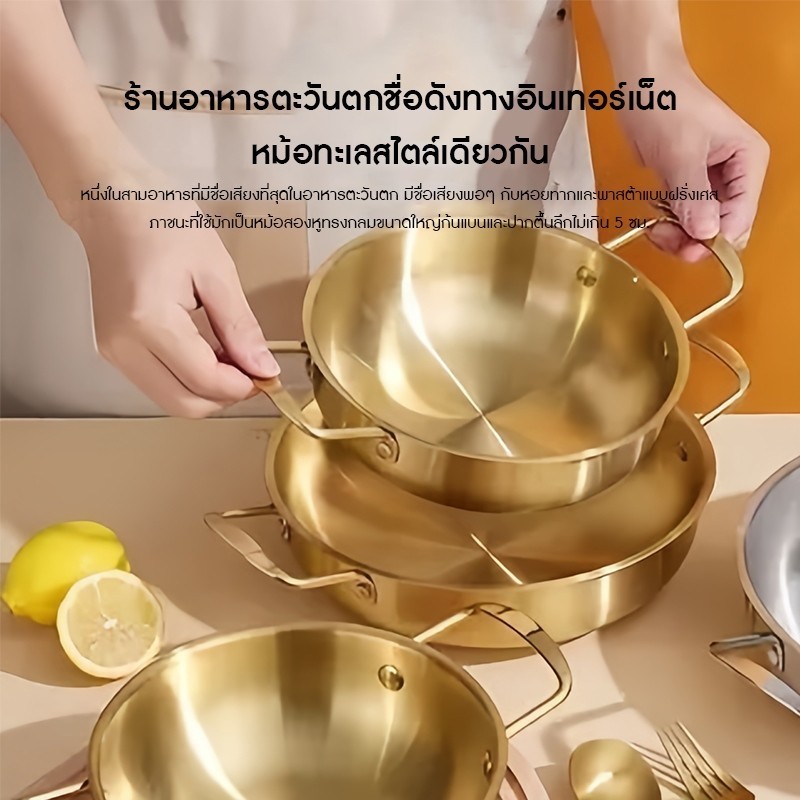 หม้อเกาหลี หม้อเกาหลีทองเหลือง ชามมาม่าหม้อ 304สแตนเลสkorean pot สำหรับต้มมาม่า รามยอน ใช้กับเตาแก๊ส เตาแม่เหล็กได้