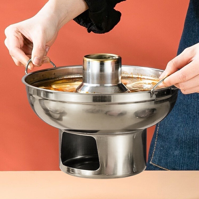 หม้อไฟอลูมิเนียม มีปล่อง ไม่มีฝา หม้อไฟสแตนเลส ขนาด 20cm. สามารถใช้กับโซดาไฟก้อนหรือถ่าน พกพาสะดวก
