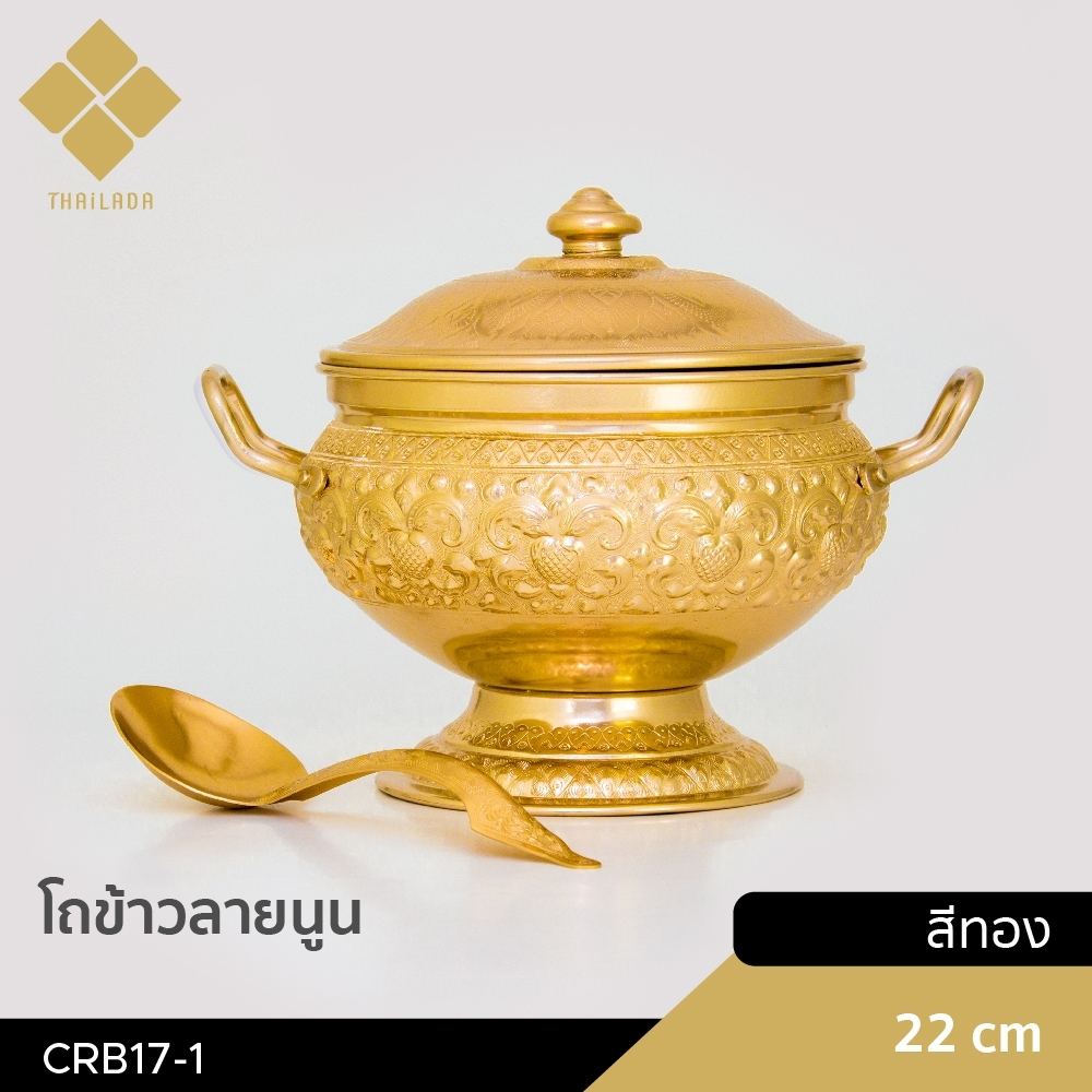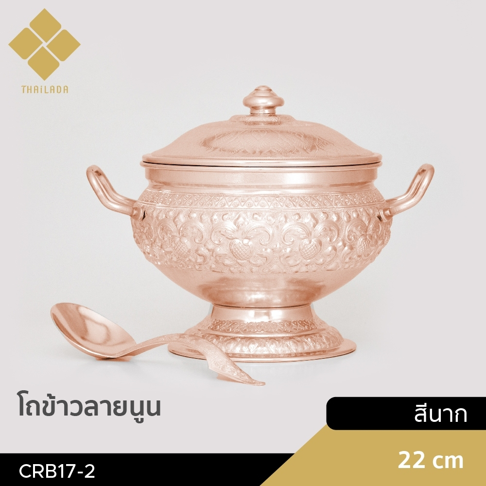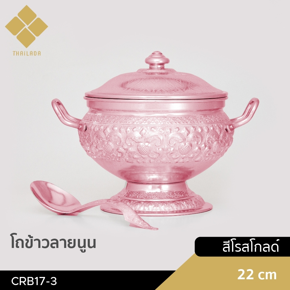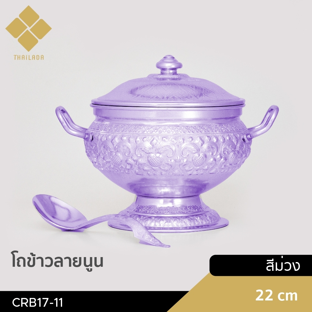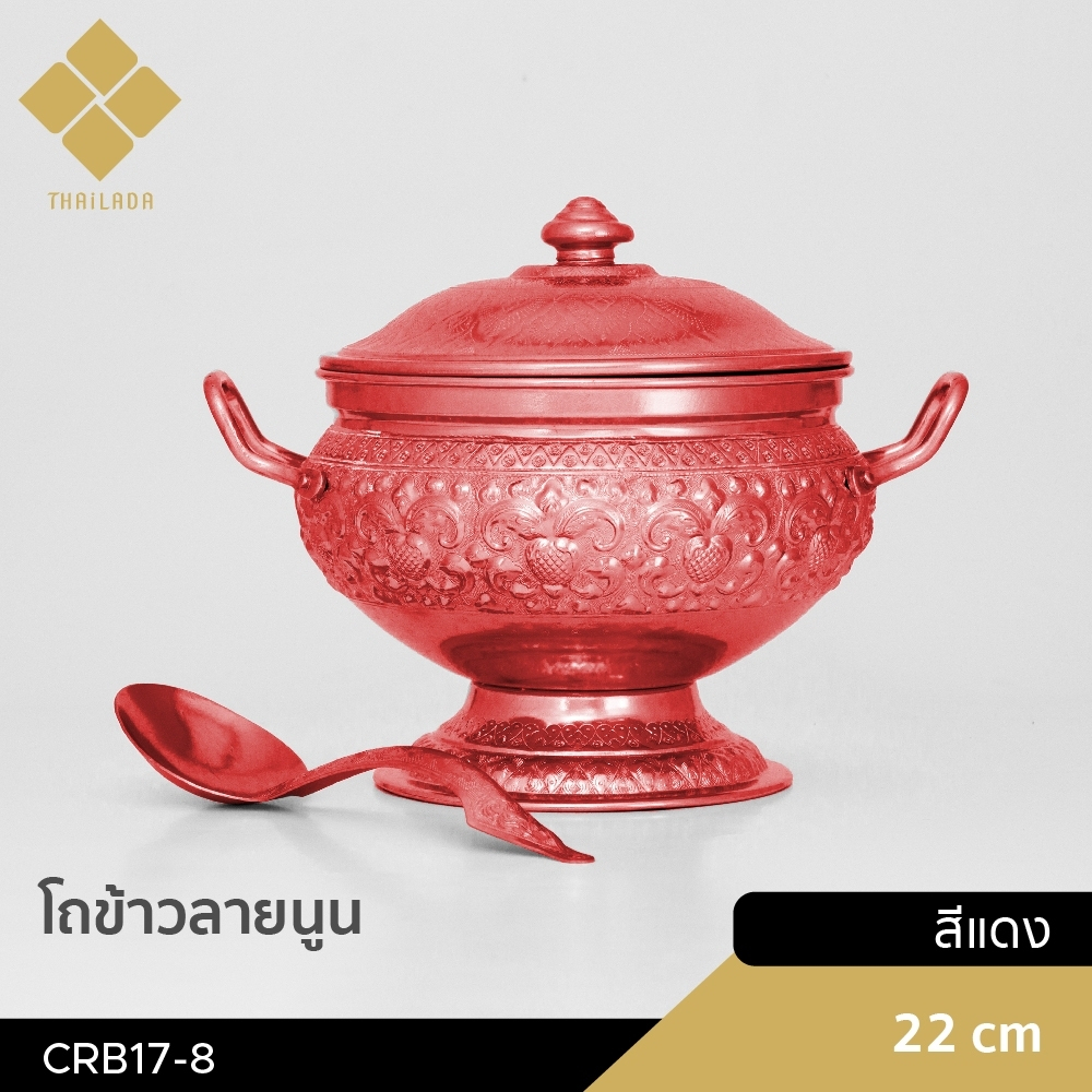 โถข้าวลายนูนและทัพพี ขนาด (กxส) 22X24 ซม.(ตำหนินิดหน่อยสีผิดเฉด) (CRB17) หม้อแบ่ง