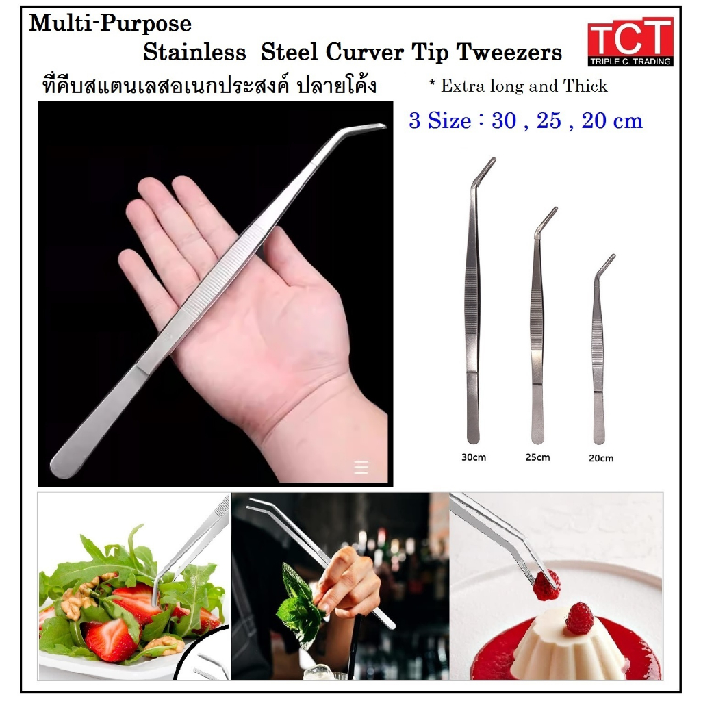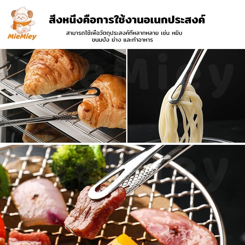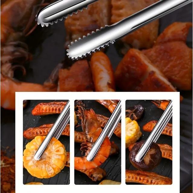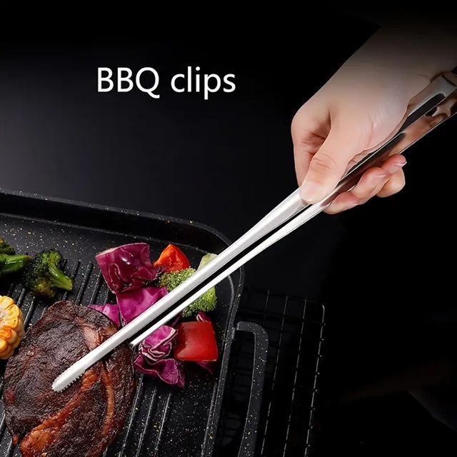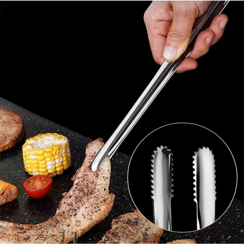 ที่คีบบาร์บีคิว สเตนเลส 304 บุฟเฟ่ต์ ที่คีบขนมปัง ครัว แหนบอบ กันความร้อน ไม่ละลาย คลิปหนีบอาหารสแตนเลส คีมคีบสเต็ก