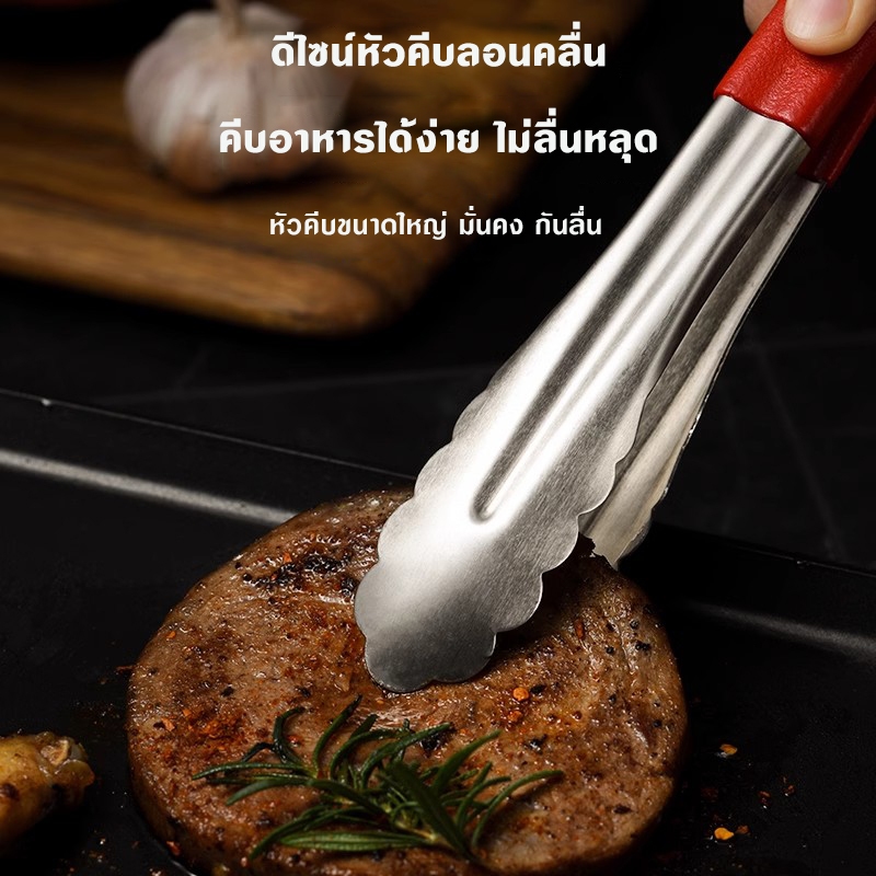 ที่คีบอาหาร สเตนเลส อเนกประสงค์ ด้ามจับยาว กันลื่น สําหรับคีบขนมปัง สเต็ก บาร์บีคิว