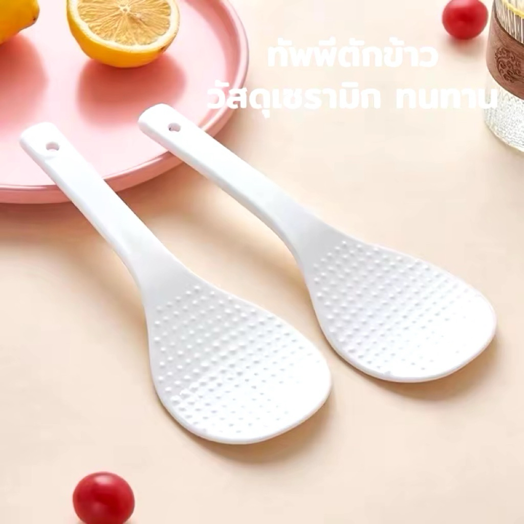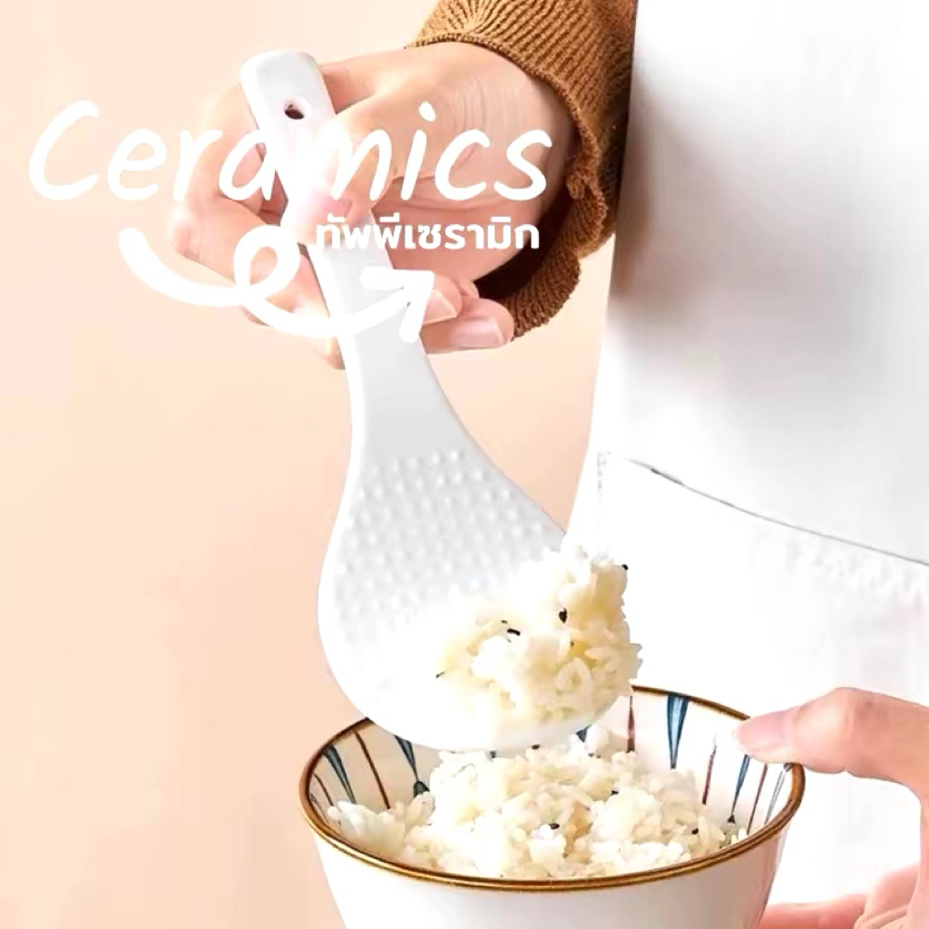 ทัพพีเซรามิค ทัพพีตักข้าว เซรามิค ทัพพีสีขาวงา ทัพพีช้อนด้ามยาว