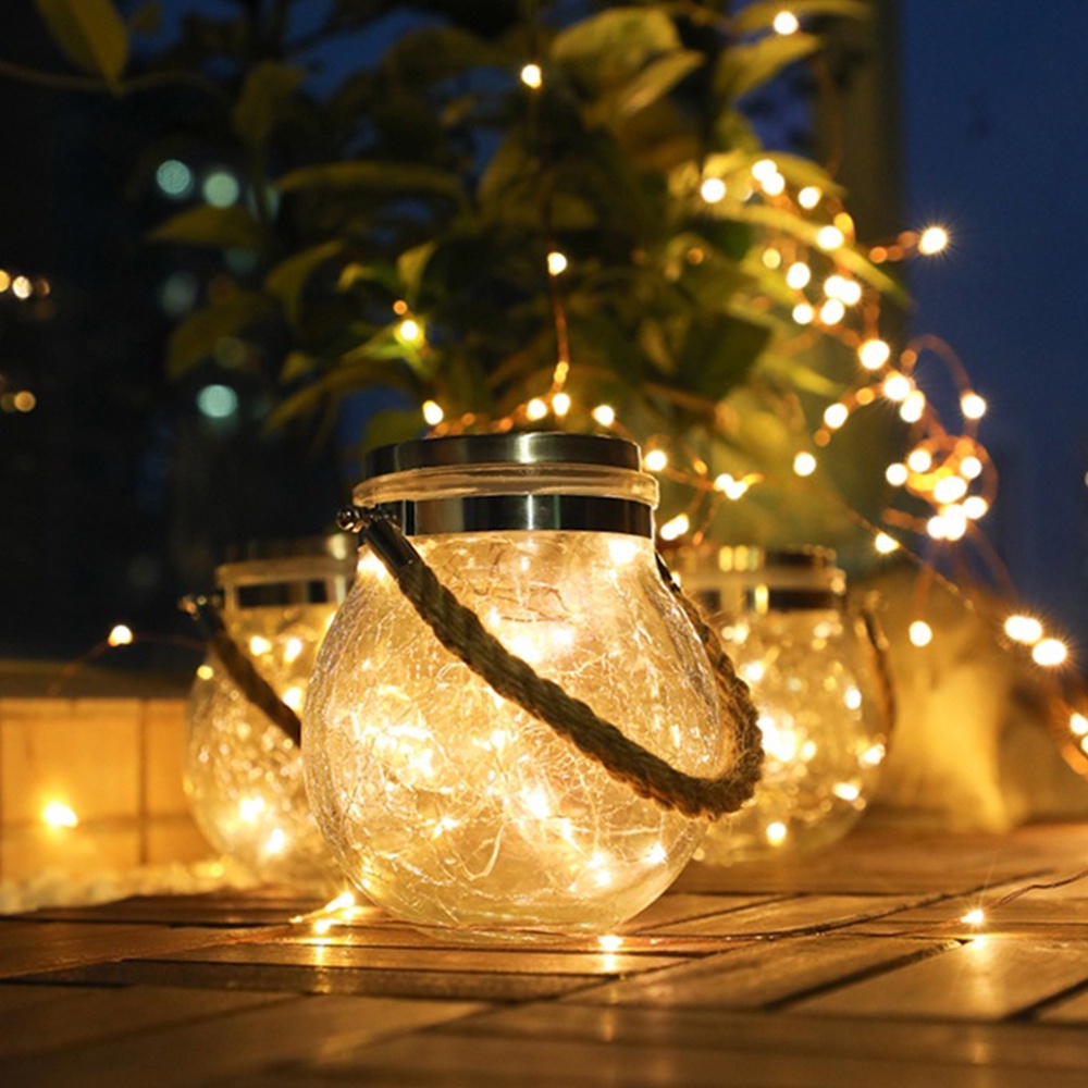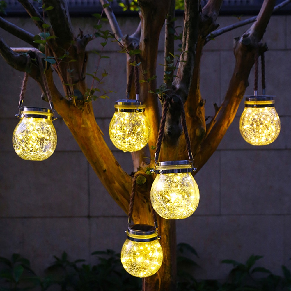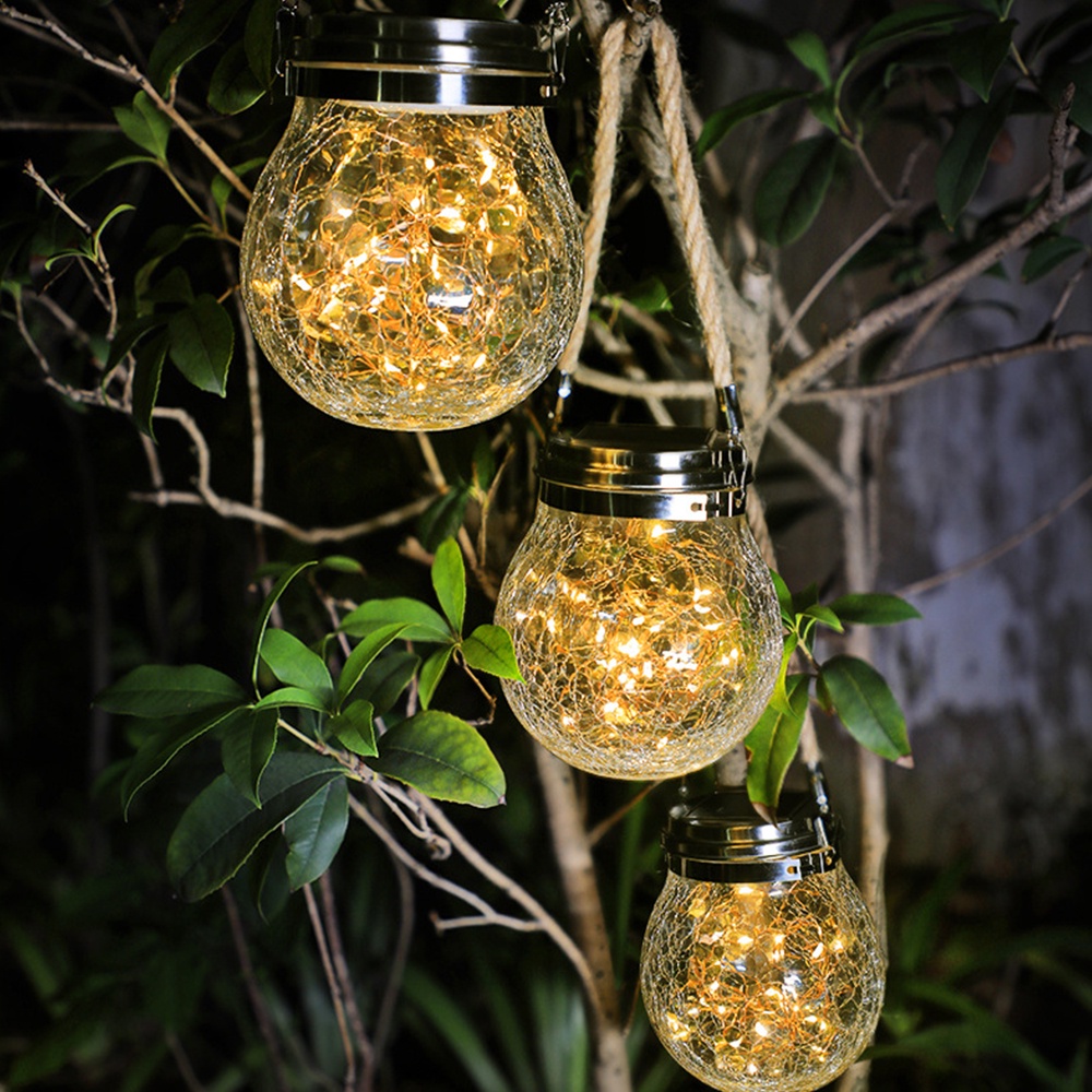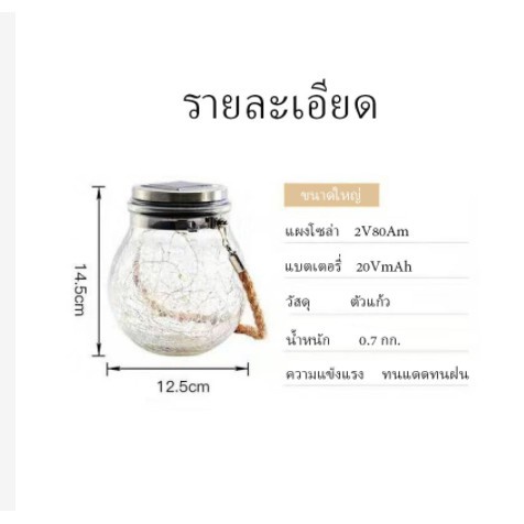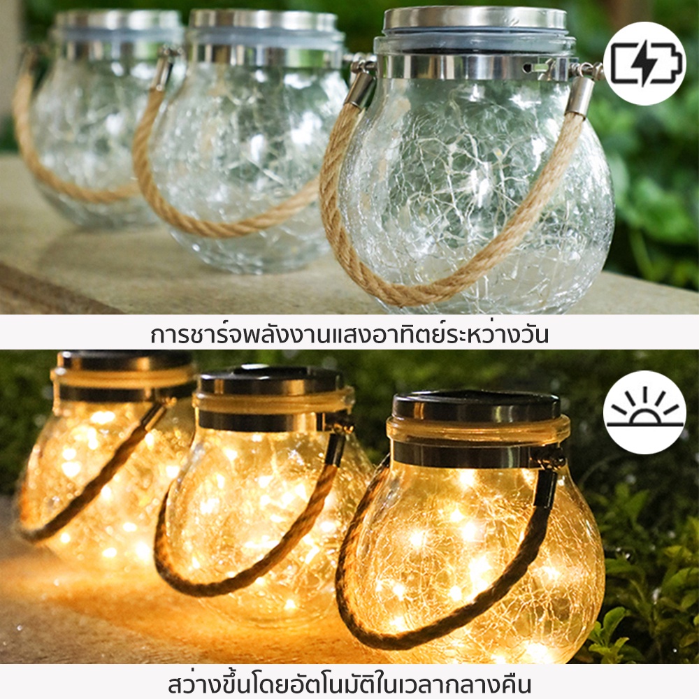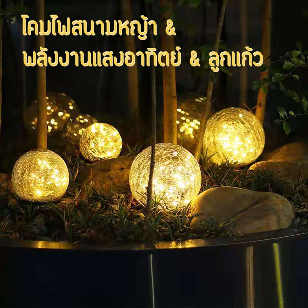 ไฟลูกแก้ว โคมไฟโซลล่าเซลล์ ไฟแต่งบ้าน โคมไฟโหลแก้วแบบแขวน โคมไฟพลังงานแสงอาทิตย์ ไฟแต่งสวน ไฟตกแต่ง สีวอมไวท์