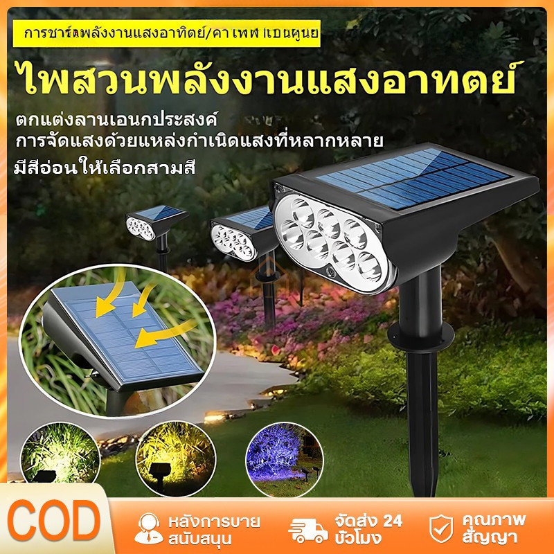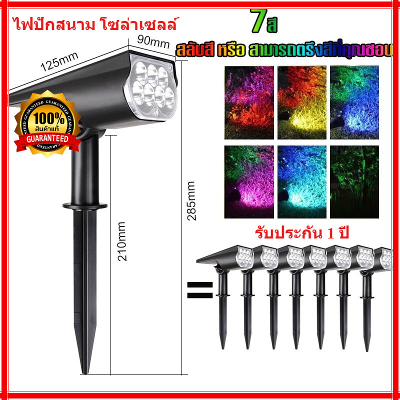 ไฟปักสนาม โซล่าเซลล์ led ไฟสวน โซล่าเซลล์ สปอตไลท์โซล่าเซลล์ สปอตไลท์ โคมไฟสนาม 1โคมไฟมี7สี