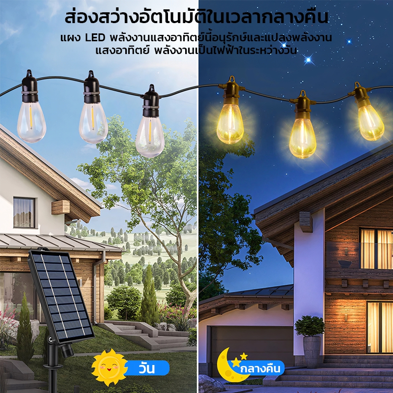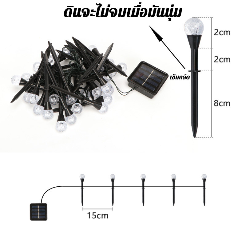 ไฟลูกแก้ว โซล่าเซลล์ 40bulb 20เมตร ไฟเส้นอัจฉริยะ ประหยัดไฟมาก ทนแดด ชุดไฟปิงปองแอลอีดี ไฟประดับสวน หลอดไฟ ไฟปิงปองไฟลูก