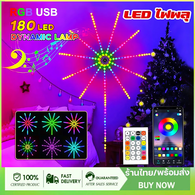 ไฟพลุ led ไฟสายไฟเปลี่ยนสีได้ สายไฟ LED 180 ดวง ซิงค์เสียงเพลง พร้อมรีโมตคอนโทรล APP 5050 RGB สําหรับตกแต่งคริสต์มาส