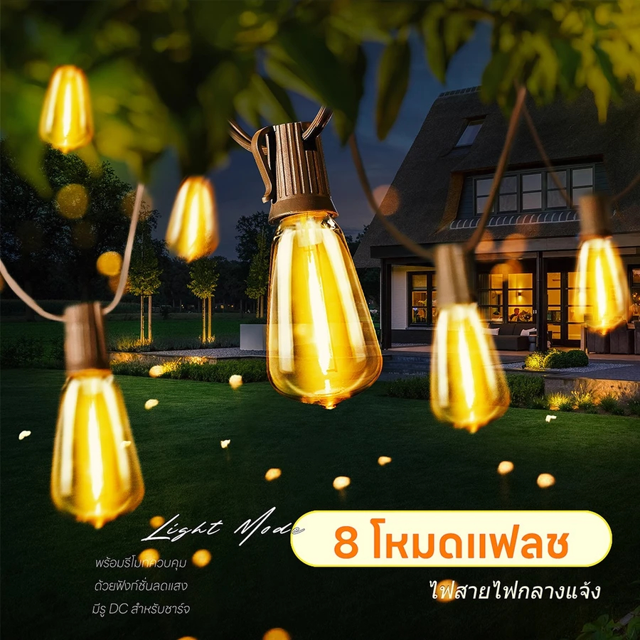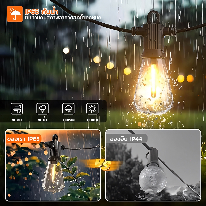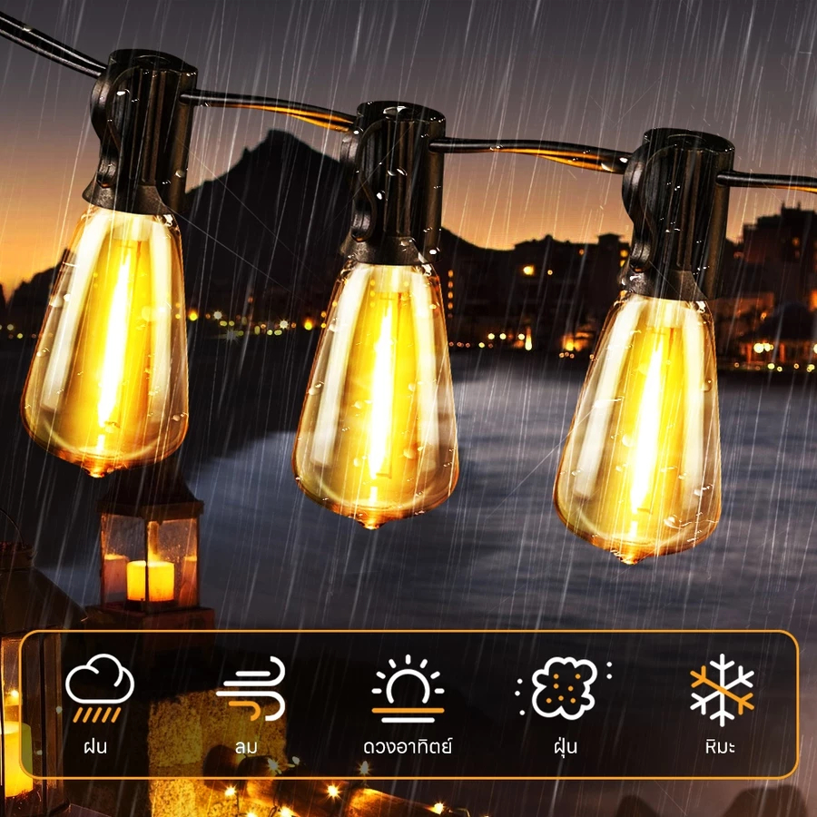ไฟปิงปอง ไฟวินเทจLED 20bulb ยาว 10เมตร หลอดแอลอีดี ขั้ว E12ปลั๊ก กันน้ำ50 bulbทังสเตนไฟโซล่าเซลล์ ไฟตกแต่งสวน