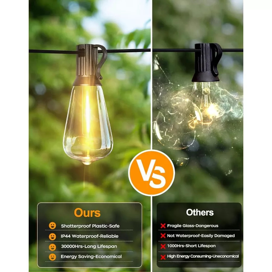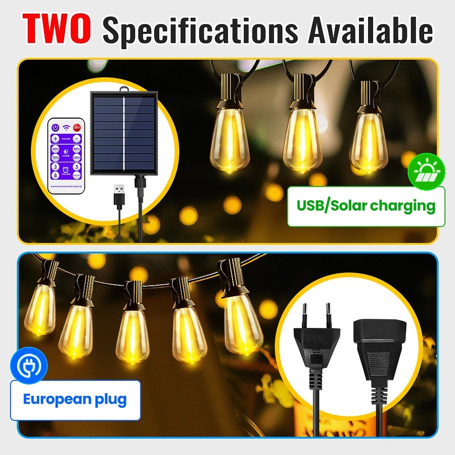 ไฟปิงปองโซลาร์ ST38 – หลอด LED พร้อมช่องเสียบ E12, น้ำตกป้อง ภายนอก IP44, ไฟแขวนสำหรับตกแต่ง