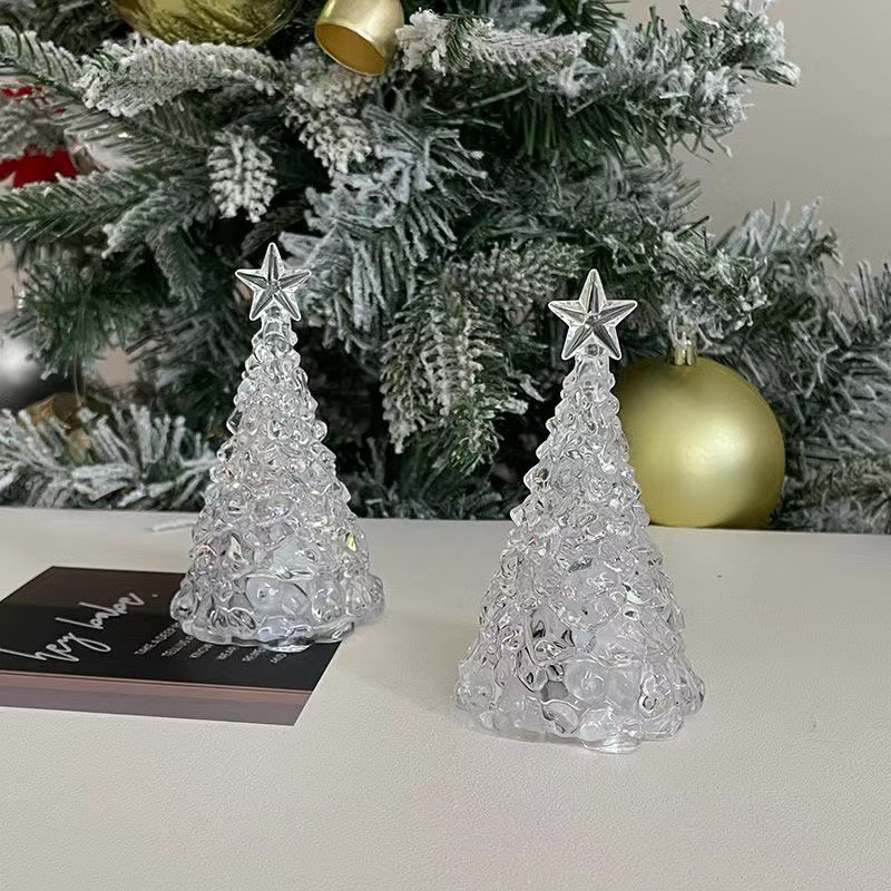 ไฟเทียน LED รูปร่างต้นคริสต์มาส คริสตัลไฟกลางคืน ของตกแต่งคริสต์มาส ของขวัญคริสต์มาสอีฟ อุปกรณ์โต๊ะ