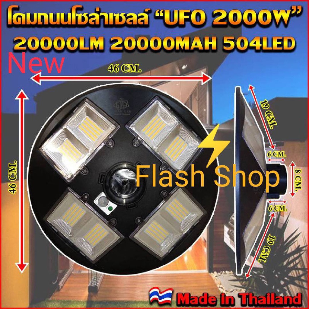 ไฟโซล่าเซลล์ UFO 2000W 8 ทิศทาง 512 LED ดีไซน์ใหม่ ไฟถนน แสงขาว/วอร์มไวท์ โคมไฟถนน UFO Square Light