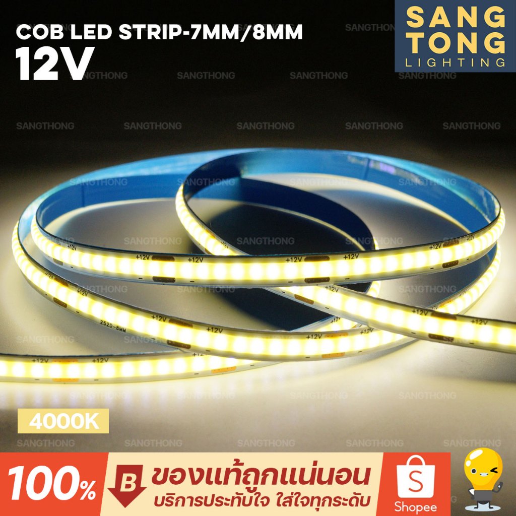 ไฟเส้น LED Strip light COB 12V ขนาด 7mm,8mm (ยาว 5 เมตร) ไม่เห็นเม็ดไฟ ริบบิ้น ไฟเส้นตกแต่งในหลืบ