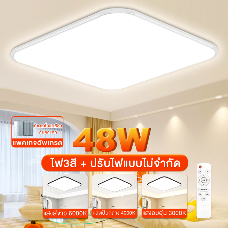 ไฟเพดานบ้าน โคมไฟเพดานรีโมท โคมไฟเพดาน LED ไฟเพดาน หรี่แสงได้ พร้อมรีโมตคอนโทรล สไตล์โมเดิร์น เบาและบางลง สําหรับห้องนอน