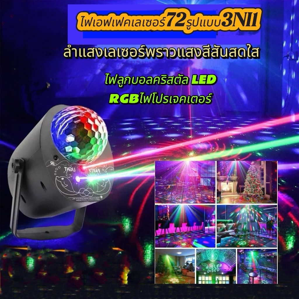 ไฟเอฟเฟคเลเซอร์ 72 รูปแบบ3 in 1 พร้อมไฟสปอตไลท์ สีชมพู พร้อมลูกบอลคริสตัล LED สําหรับดิสโก้ RGB ไฟปาร์ตี้ โปรเจคเตอร์