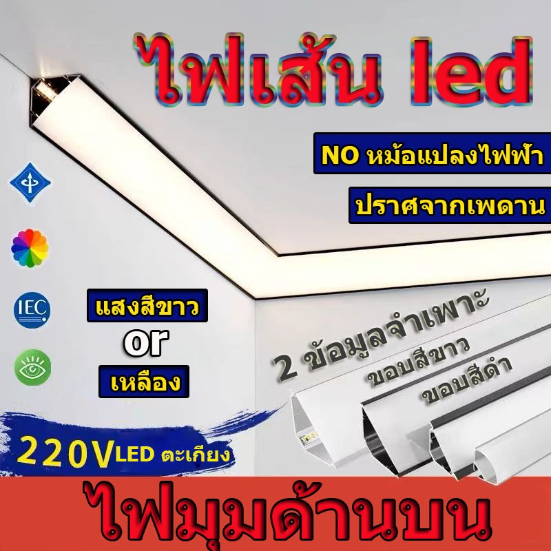 ไฟเส้น led รางอลูมิเนียม โคมไฟเพดาน 220V แสงสีขาว/แสงสีเหลือง ไฟตกแต่ง ติดตั้งบนเพดานแต่ละห้อง