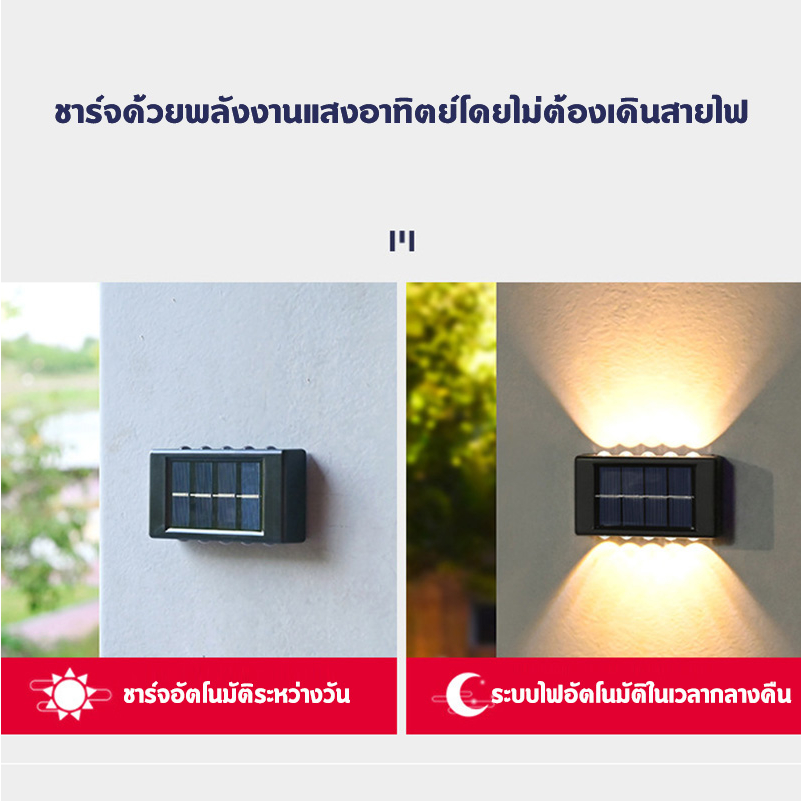 ไฟโซล่าเซลล์ โคมไฟติดผนัง พลังงานแสงอาทิตย์ Solar light สำหรับกลางแจ้ง โคมไฟติดผนังภายนอก