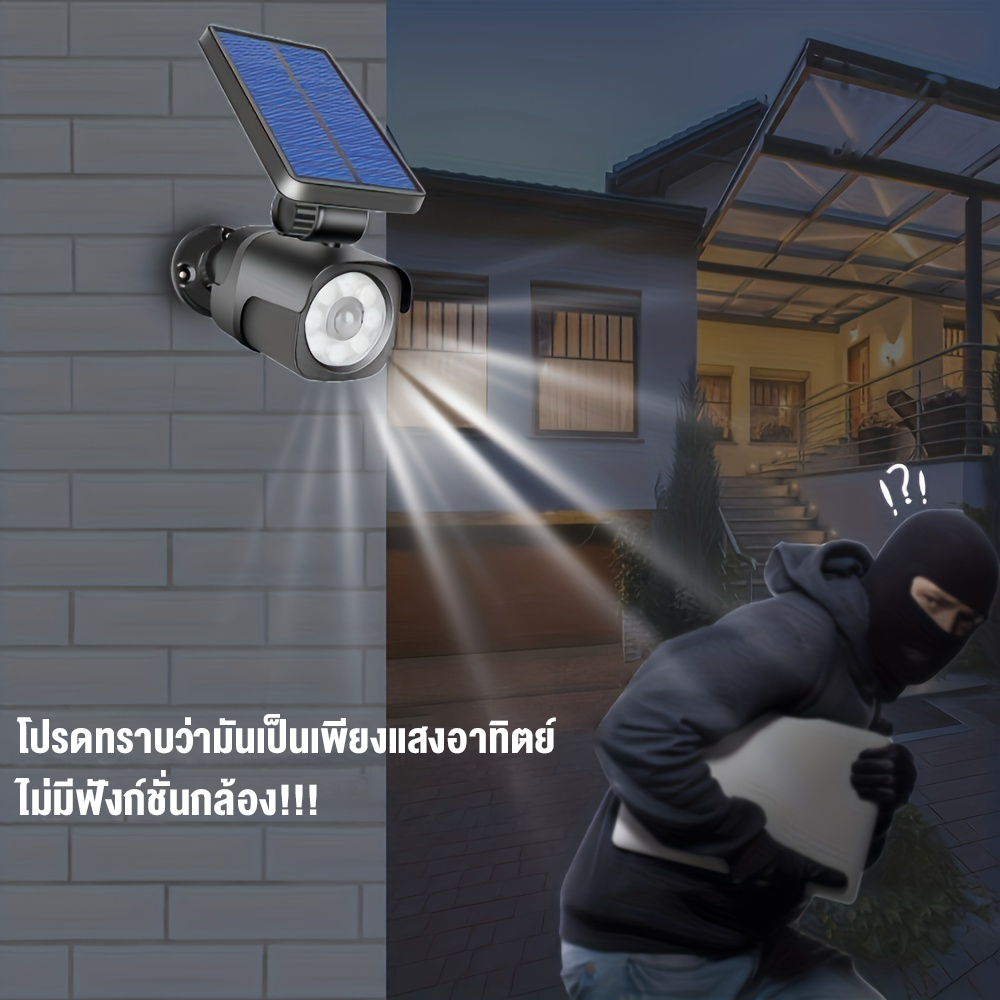 ไฟโซล่าเซลล์ สปอร์ตไลท์ LED พลังงานแสงอาทิตย์ ปรับมุมส่อง 180° กันน้ำ มีเซ็นเซอร์จับความเคลื่อนไหว