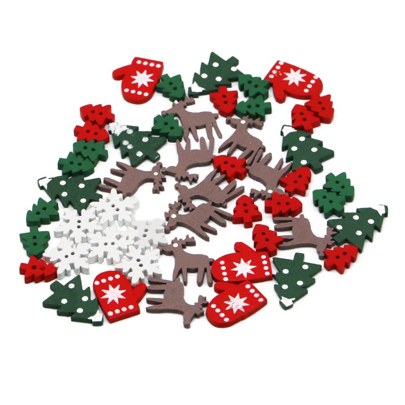 (50 ชิ้น/แพ็ค) มินิต้นคริสต์มาสถุงมือชิปผสมตกแต่งชิปไม้คริสต์มาสแขวนตกแต่งที่มีสีสัน Elk ของขวัญป้าย DIY