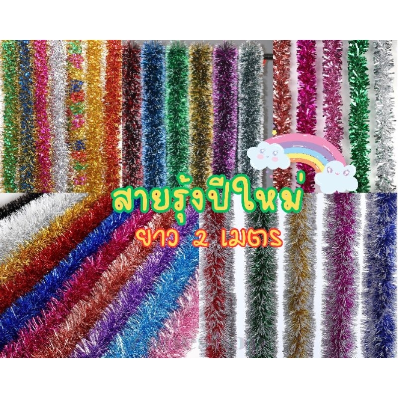 (12เส้น)🎉สายรุ้งปีใหม่ สายรุ้งประดับ สายรุ้งตกแต่ง ยาว 2 เมตร กว้าง 9 ซม.