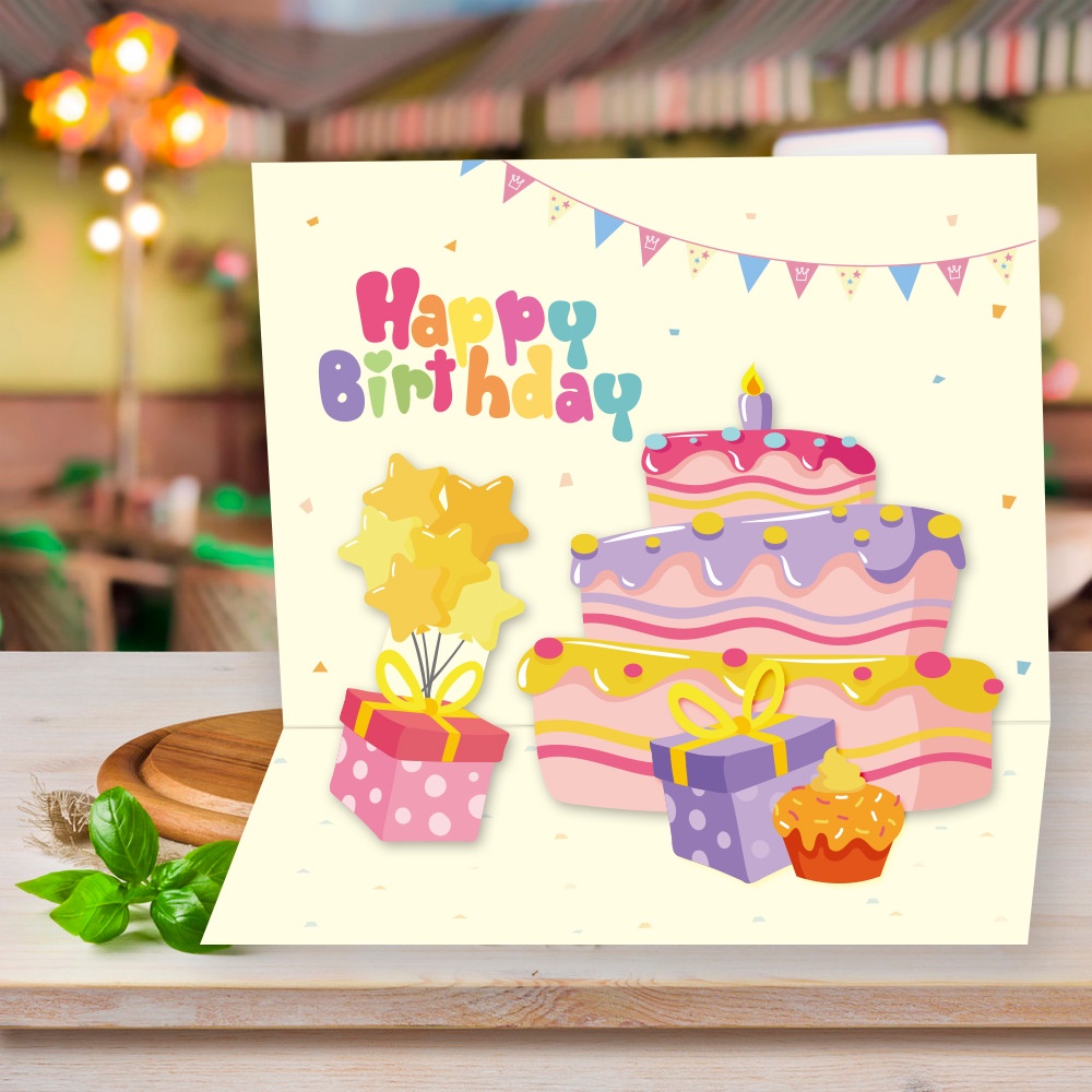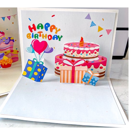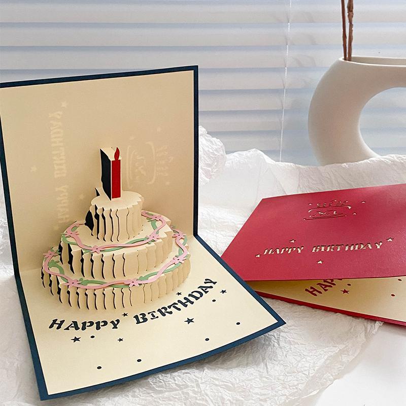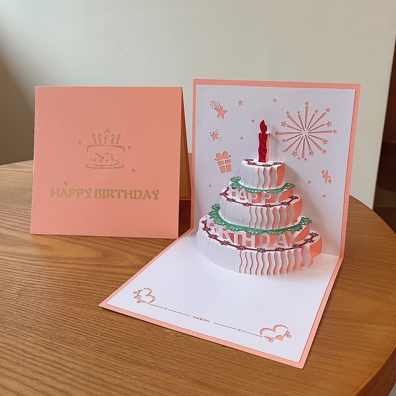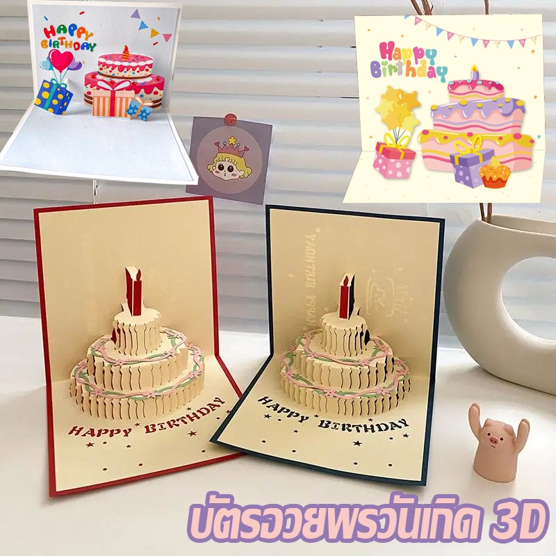 บัตรอวยพรวันเกิด 3D ใช้สำหรับอวยพรวันเกิด การ์ดอวยพรวันเกิดเค้ก สําหรับตกแต่งเค้กวันเกิด