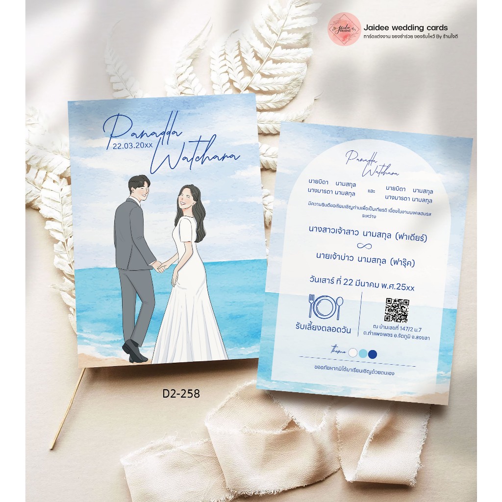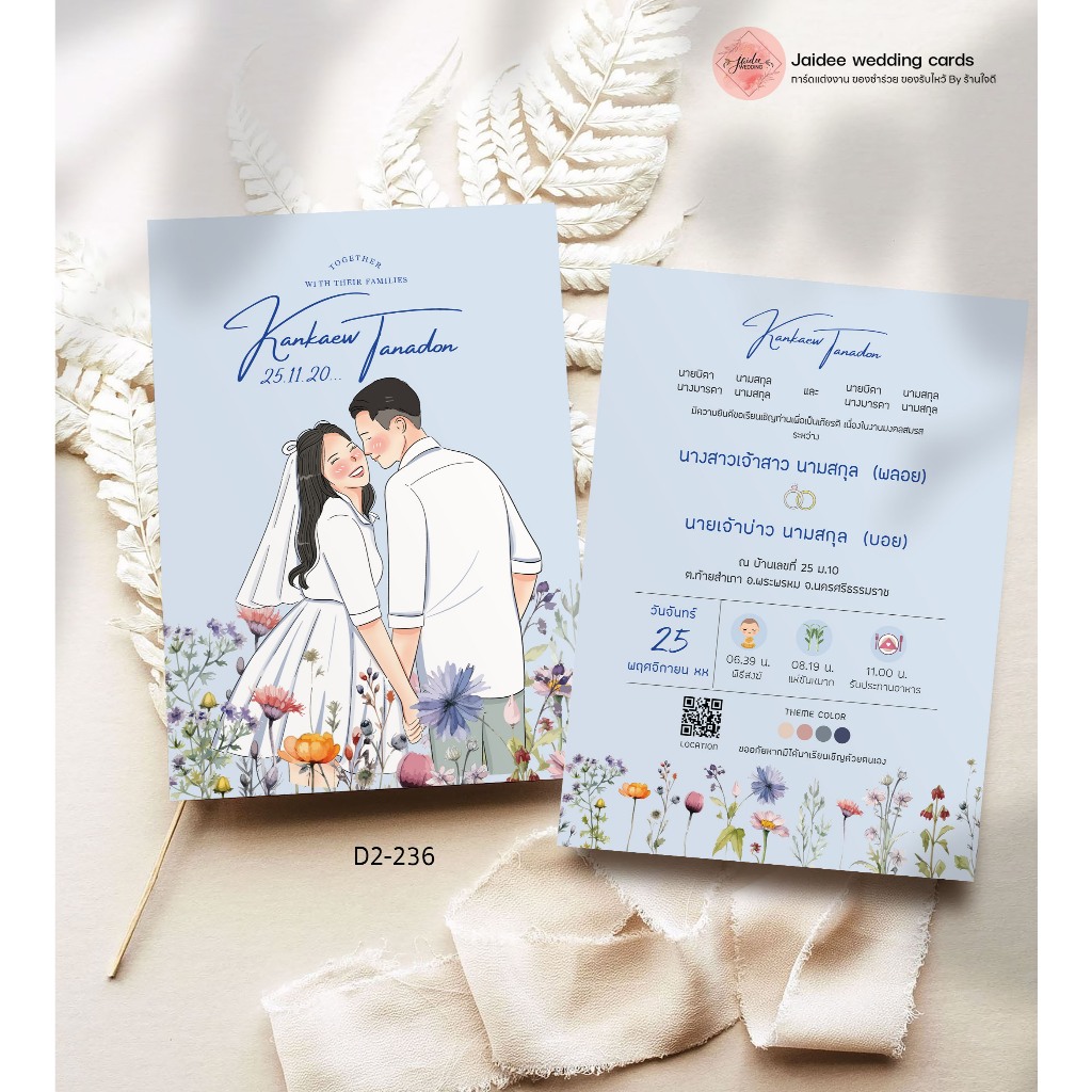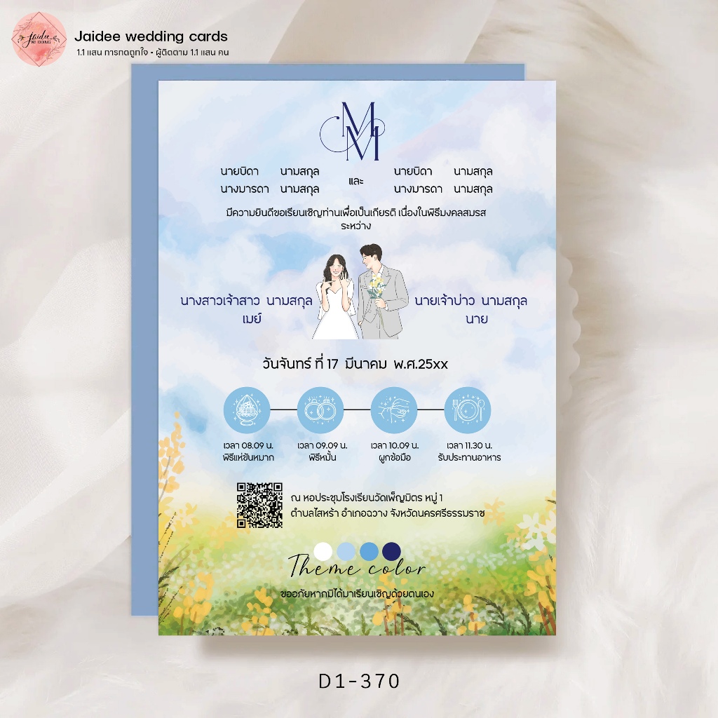 บัตรเชิญ ธีมฟ้าขาว มินิมอล การ์ดงานแต่ง พิมพ์ซอง เรียนเชิญ รายชื่อแขก ได้ @ร้านใจดี