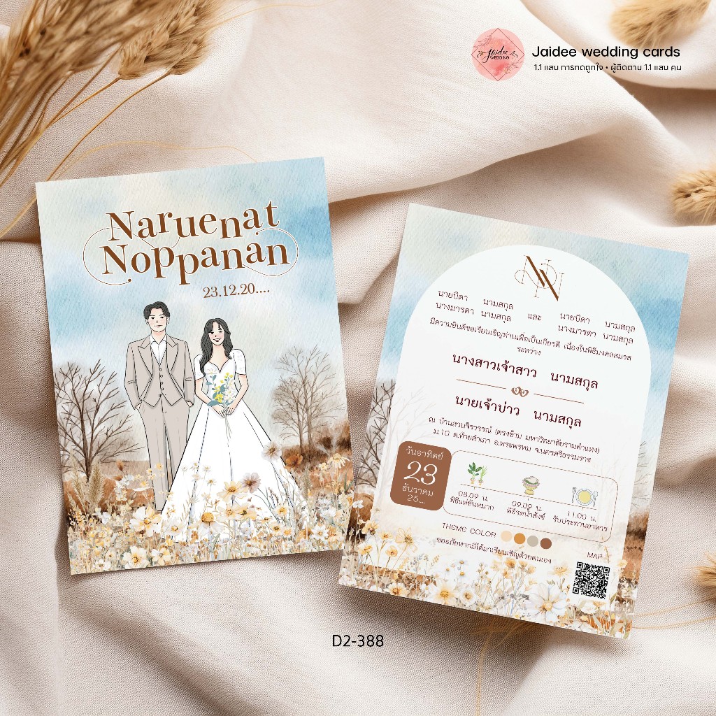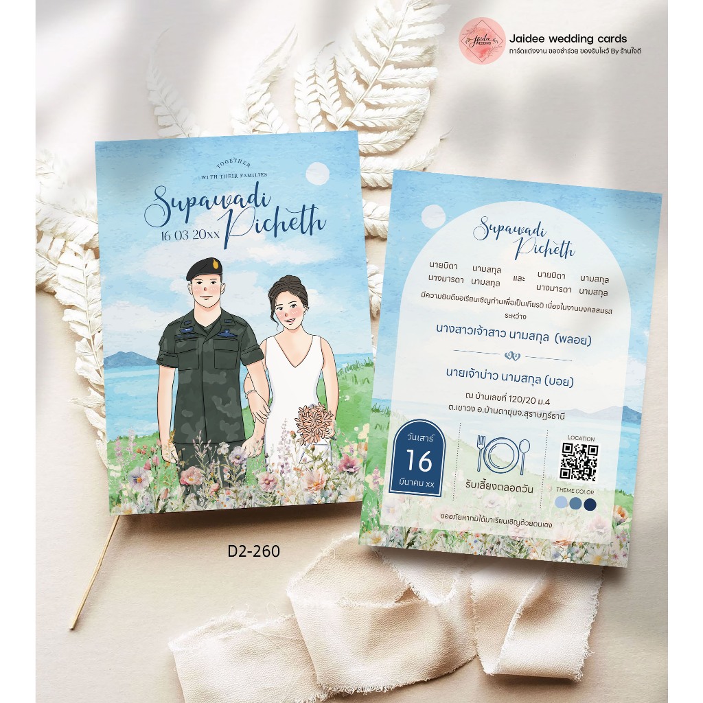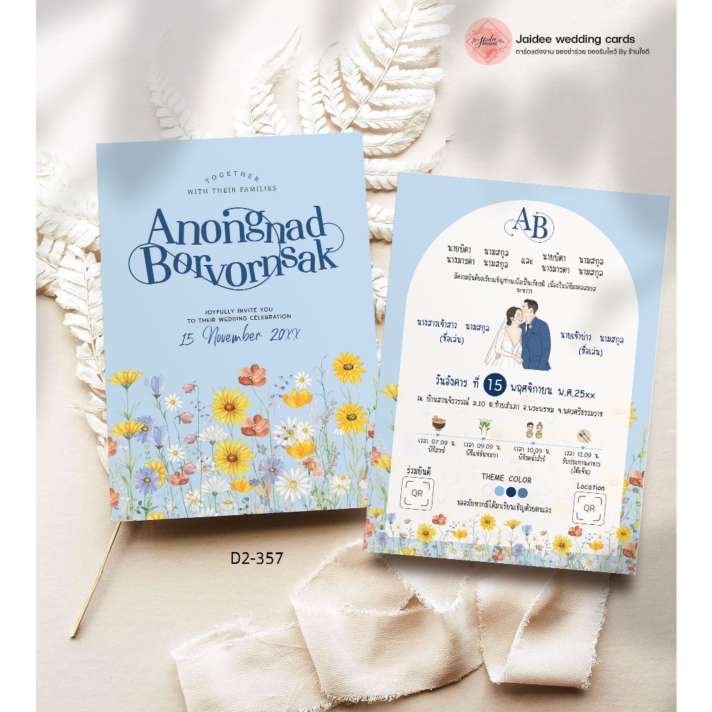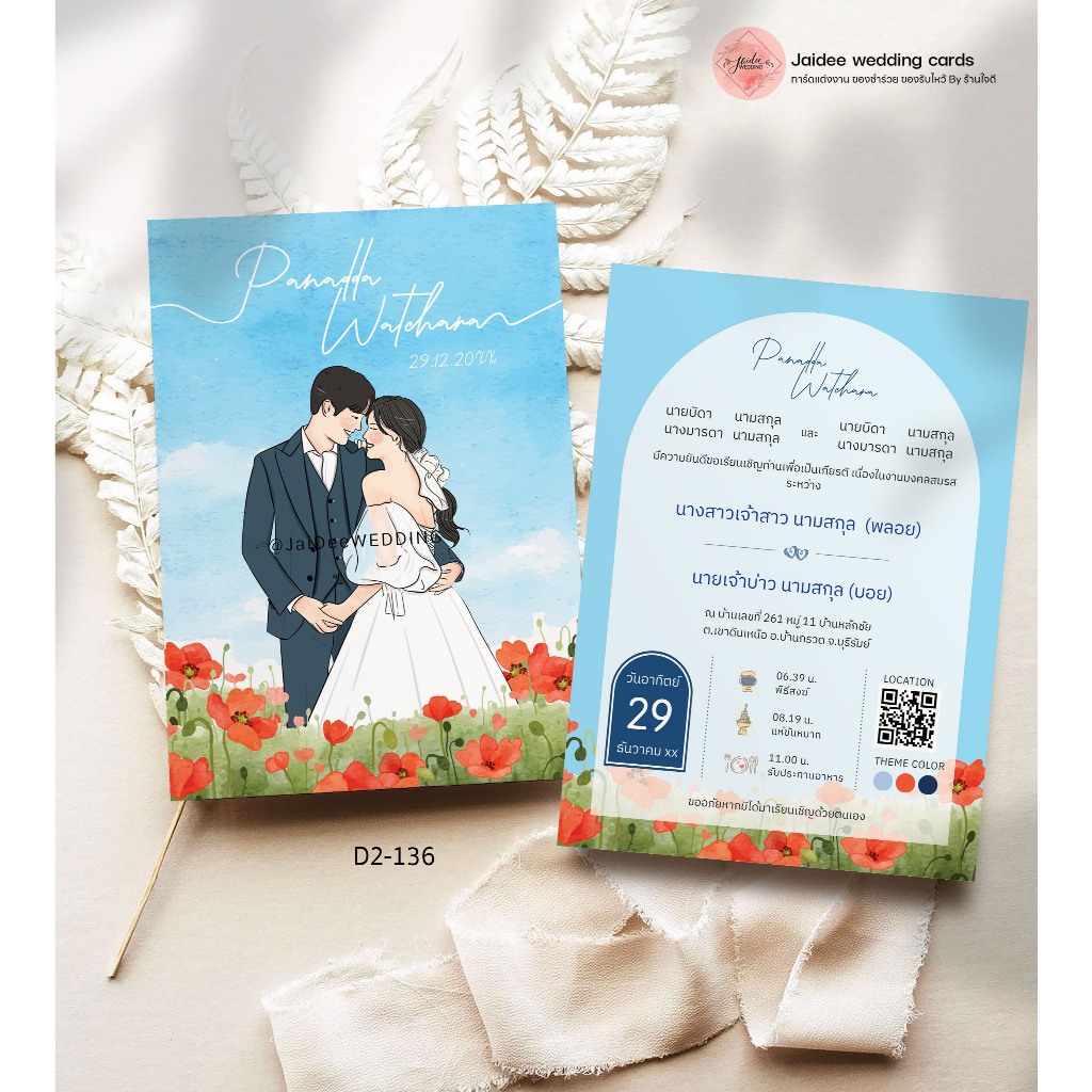 บัตรเชิญ ธีมฟ้าขาว มินิมอล การ์ดงานแต่ง พิมพ์ซอง เรียนเชิญ รายชื่อแขก ได้ @ร้านใจดี