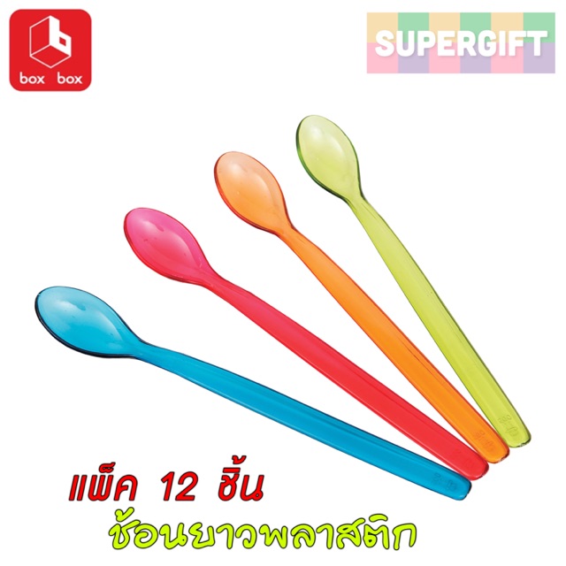 BoxBox ช้อนพลาสติกใส อย่างดี (12 ชิ้น/แพ็ค) ช้อนไอศกรีม พลาสติกหนา ใช้ซ้ำได้