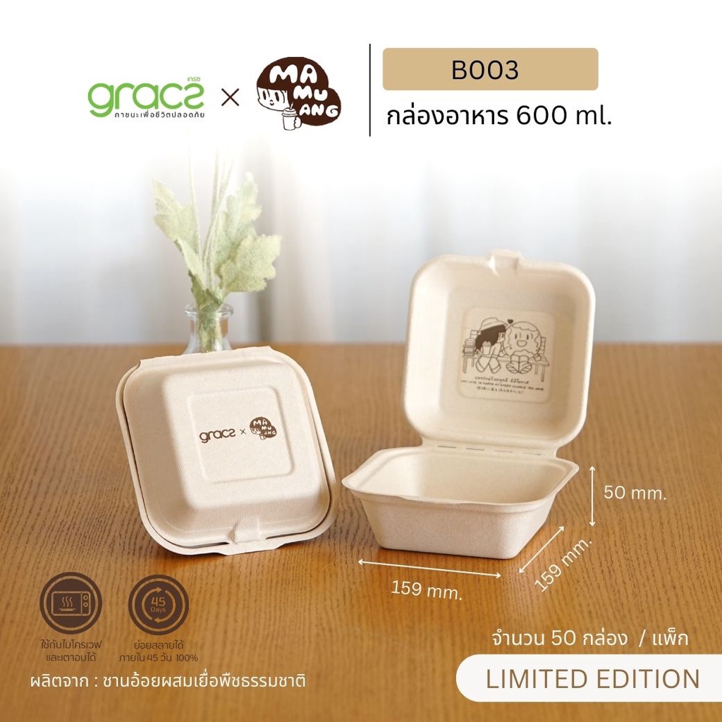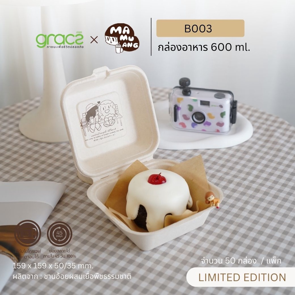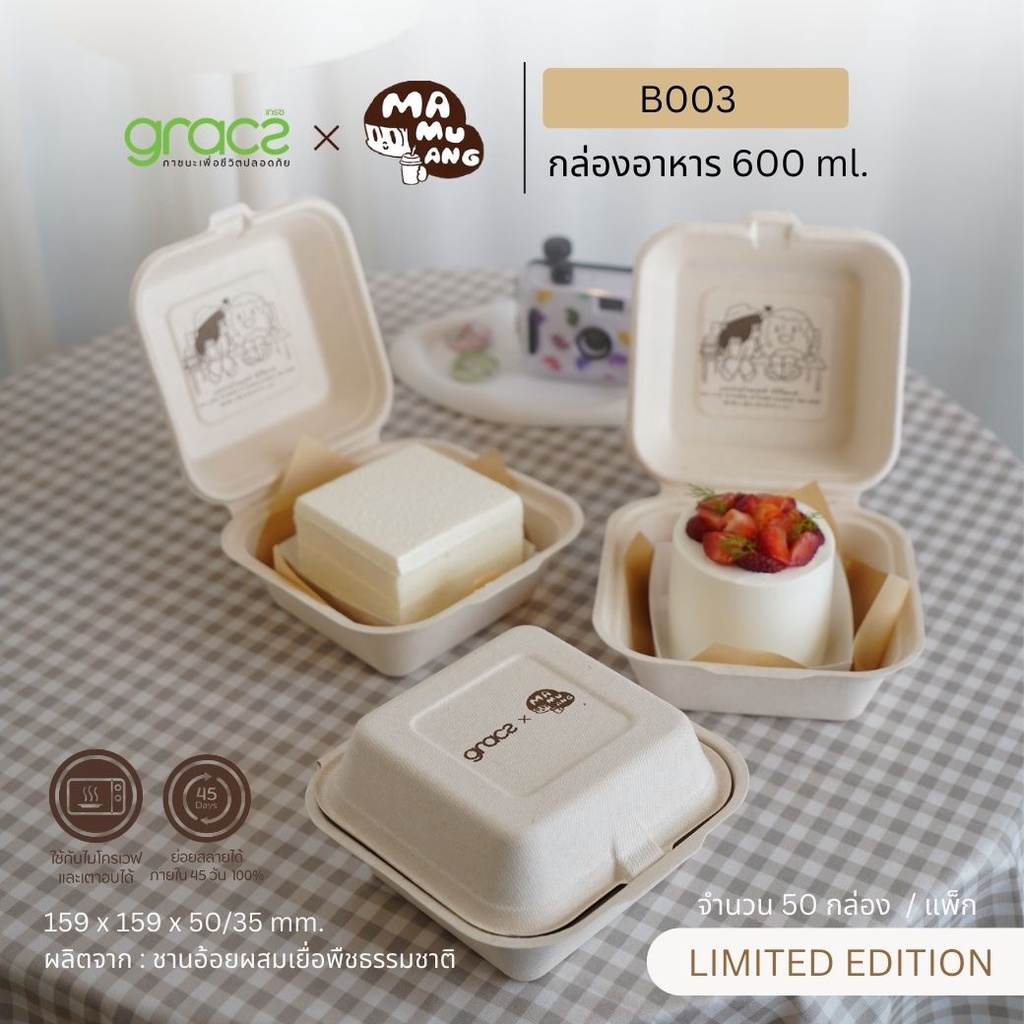 GRACZ X MAMUANG กล่องเค้ก กล่องเบเกอรี่ ชานอ้อย 500 ml. ลายน้องมะม่วง เข้าไมโครเวฟ และเตาอบได้ (50 ชิ้น)