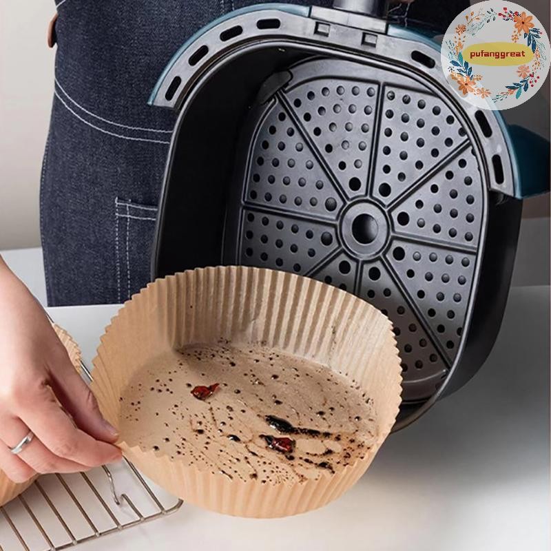 Pufanggreat 25/50pcs Air Fryer กระดาษแบบใช้แล้วทิ้งตะกร้า Non-Stick Oil-Proof Parchment รอบ Airfryer กระดาษรองอบอุปกรณ์ครัว TH