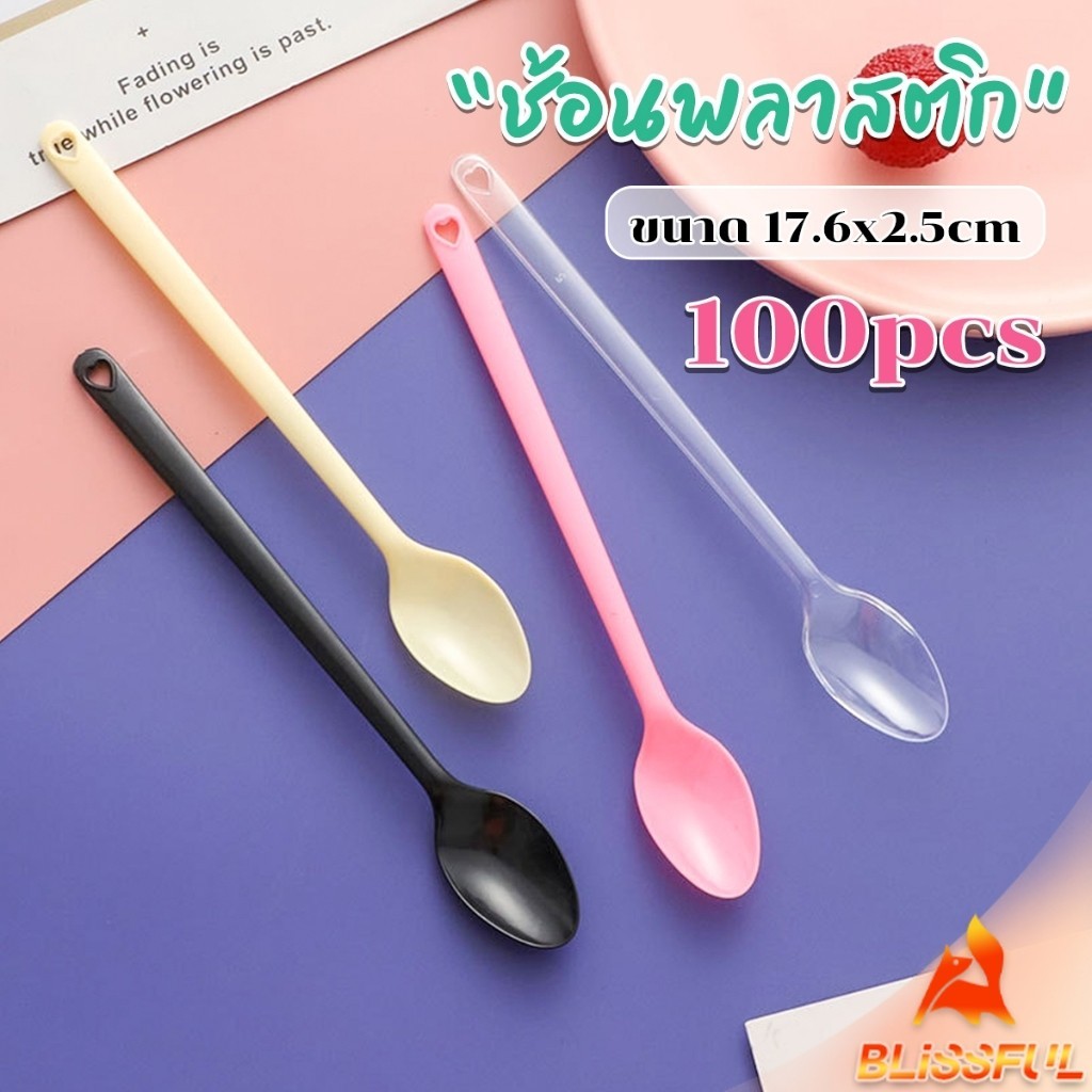 B.F ช้อนพลาสติก 100 ชิ้น ช้อนตักของหวาน ไอสครีมแบบใช้แล้วทิ้ง Plastic spoon