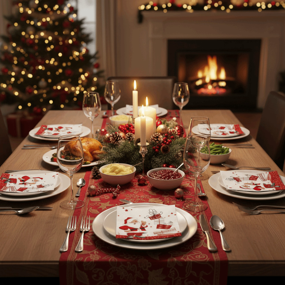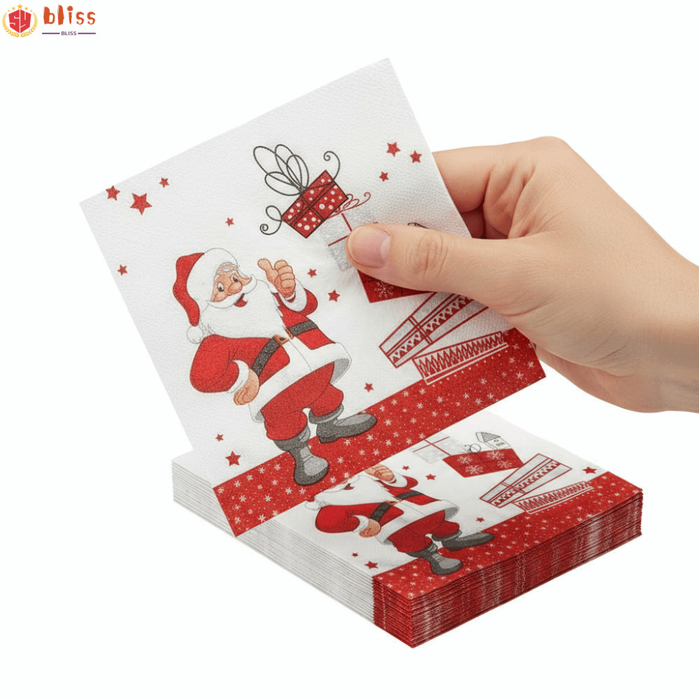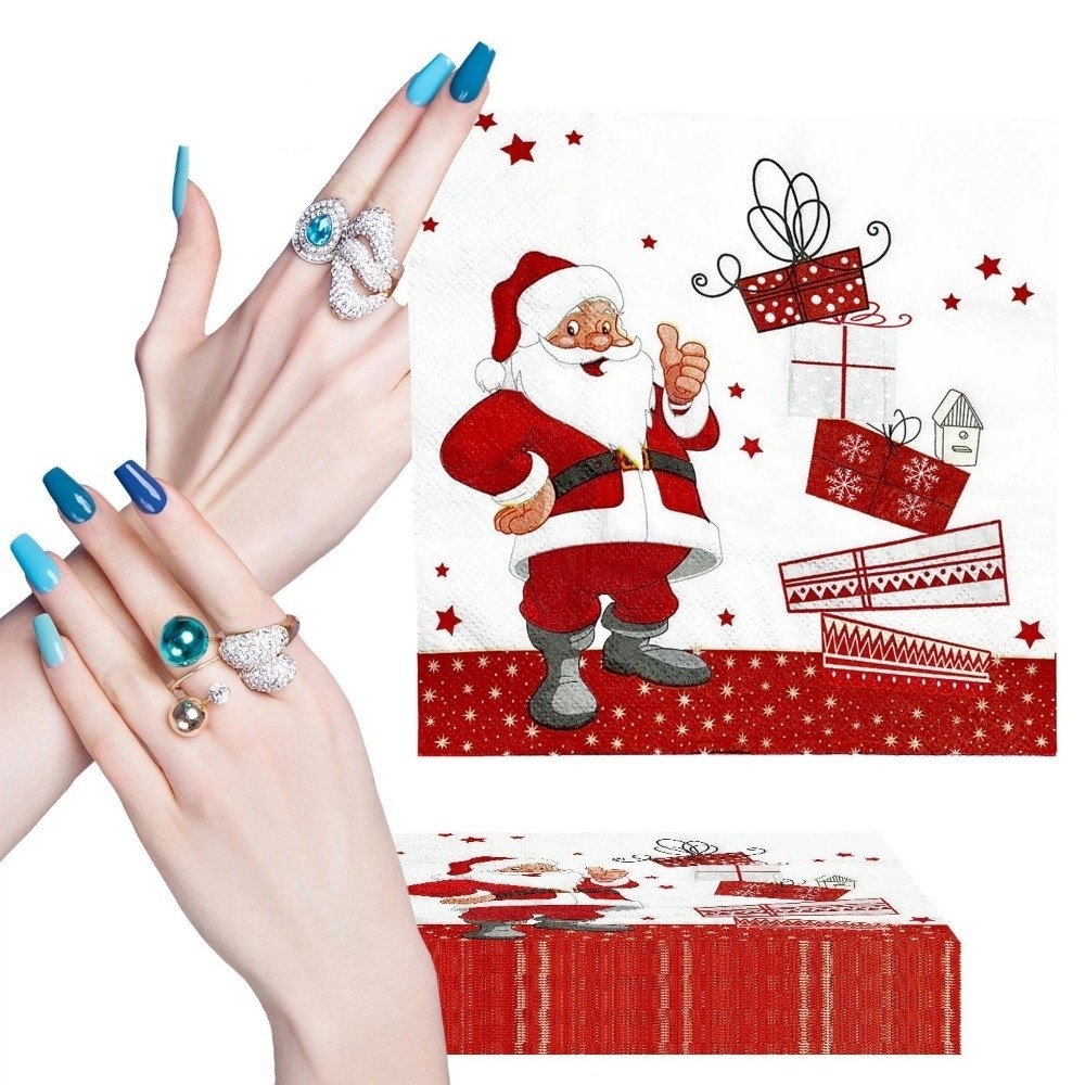 BLLISS 20/40/100pcs จานอาหารค่ําคริสต์มาส,กระดาษพิมพ์ Santa Claus Christmas Party ผ้าเช็ดปาก,ทิ้ง Xmas ตารางวันหยุดตกแต่งตาราง