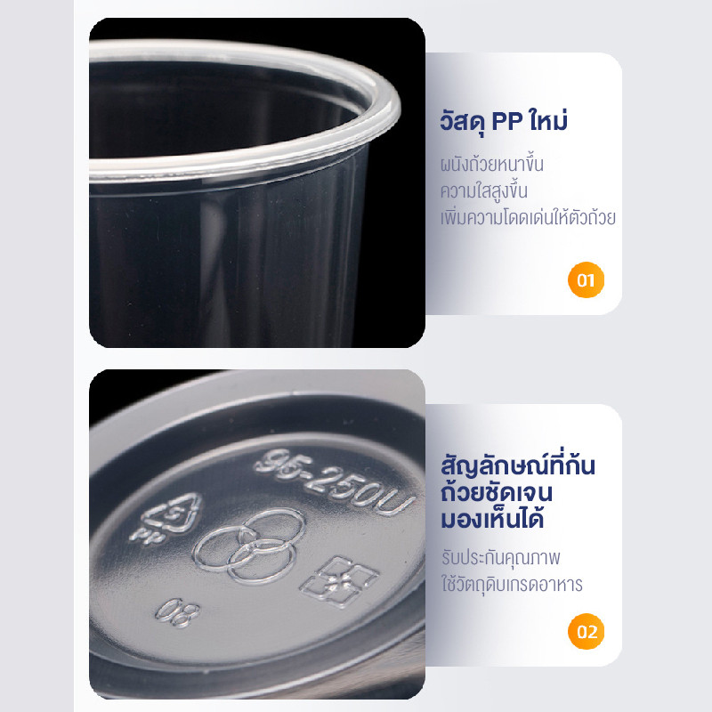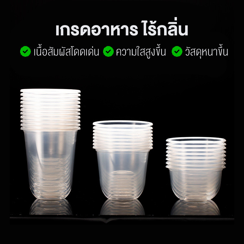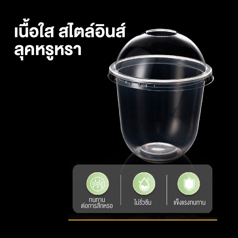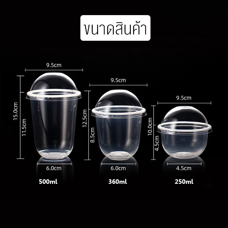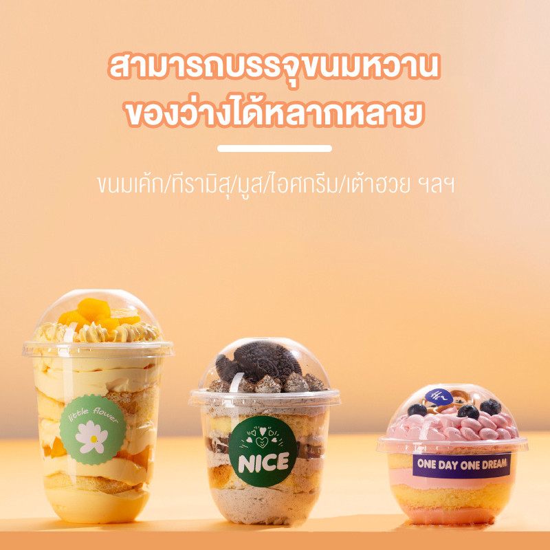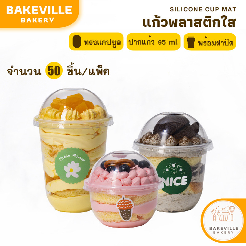 BAKEVille พร้อมส่ง แก้วพลาสติกใส ทรงแคปซูล พร้อมฝาปิด 50ใบ/แพ็ค ปากแก้ว95ml ฝาไม่เจาะรู แก้วใส่ขนม ไอศกรีม ของหวาน
