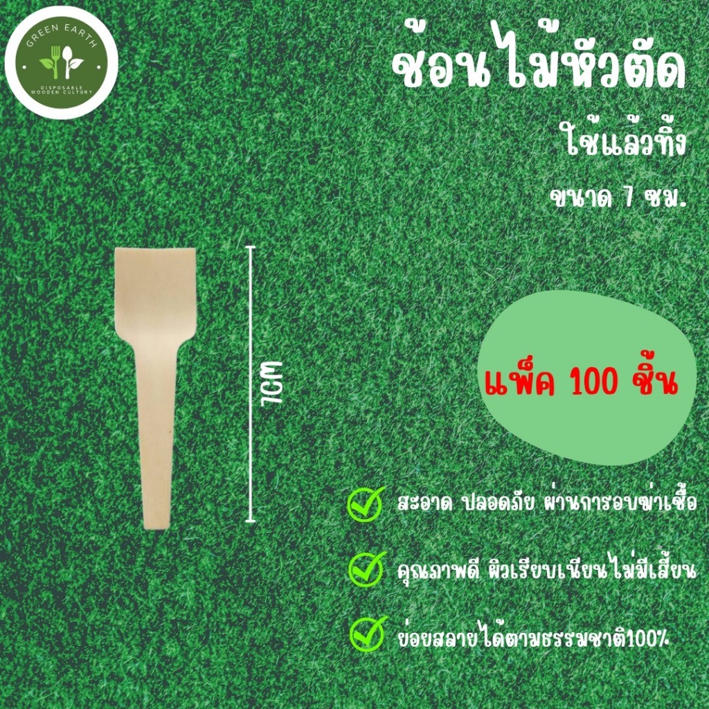 Greenearth ช้อนชิม ช้อนไม้ขนาดเล็กแบบใช้แล้วทิ้ง ช้อนไม้รักษ์โลกขนาด7ซม.(แพ็ค100ชิ้น)