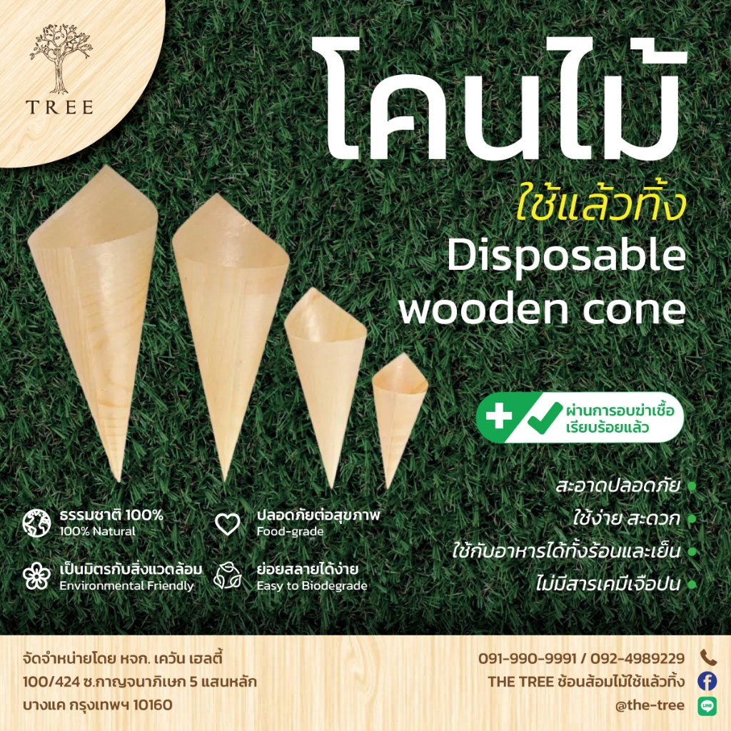 TREE โคนไม้ใช้แล้วทิ้ง ขนาด 5,6,6.5,7.5 นิ้ว (แพ็คละ50,100ชิ้น)