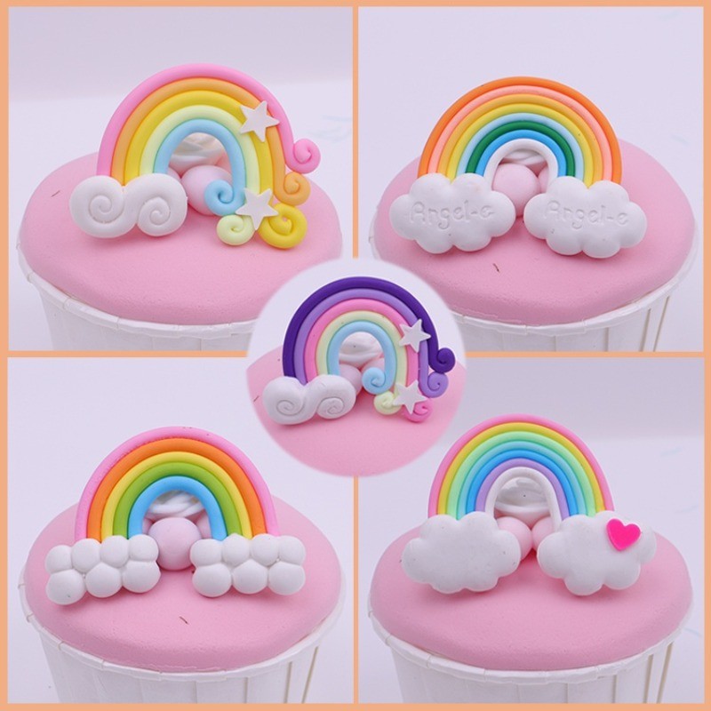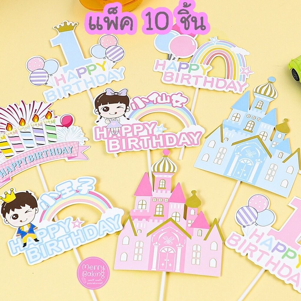 [จุด] ตกแต่งเค้กสายรุ้ง3ง ธงสุขสันต์วันเกิดใช้สําหรับตกแต่งเค้กแต่งงานขนม