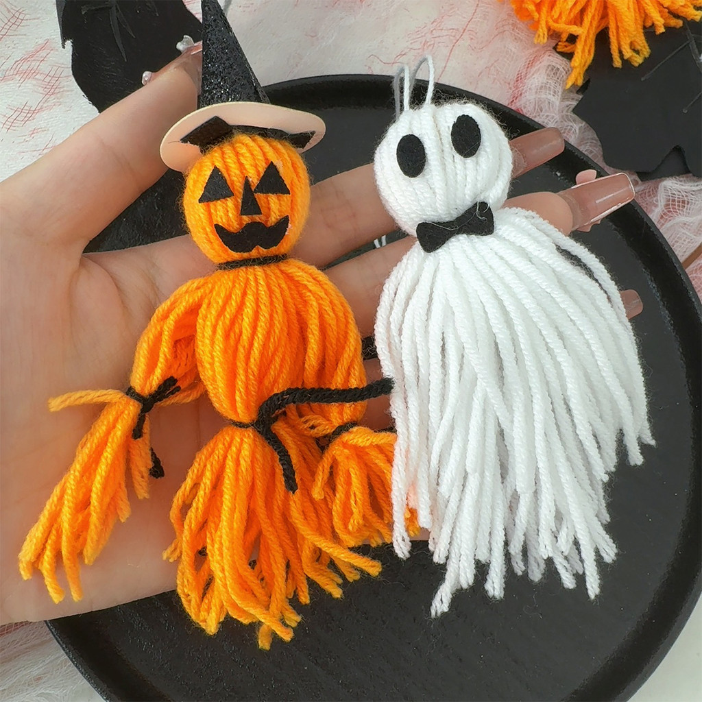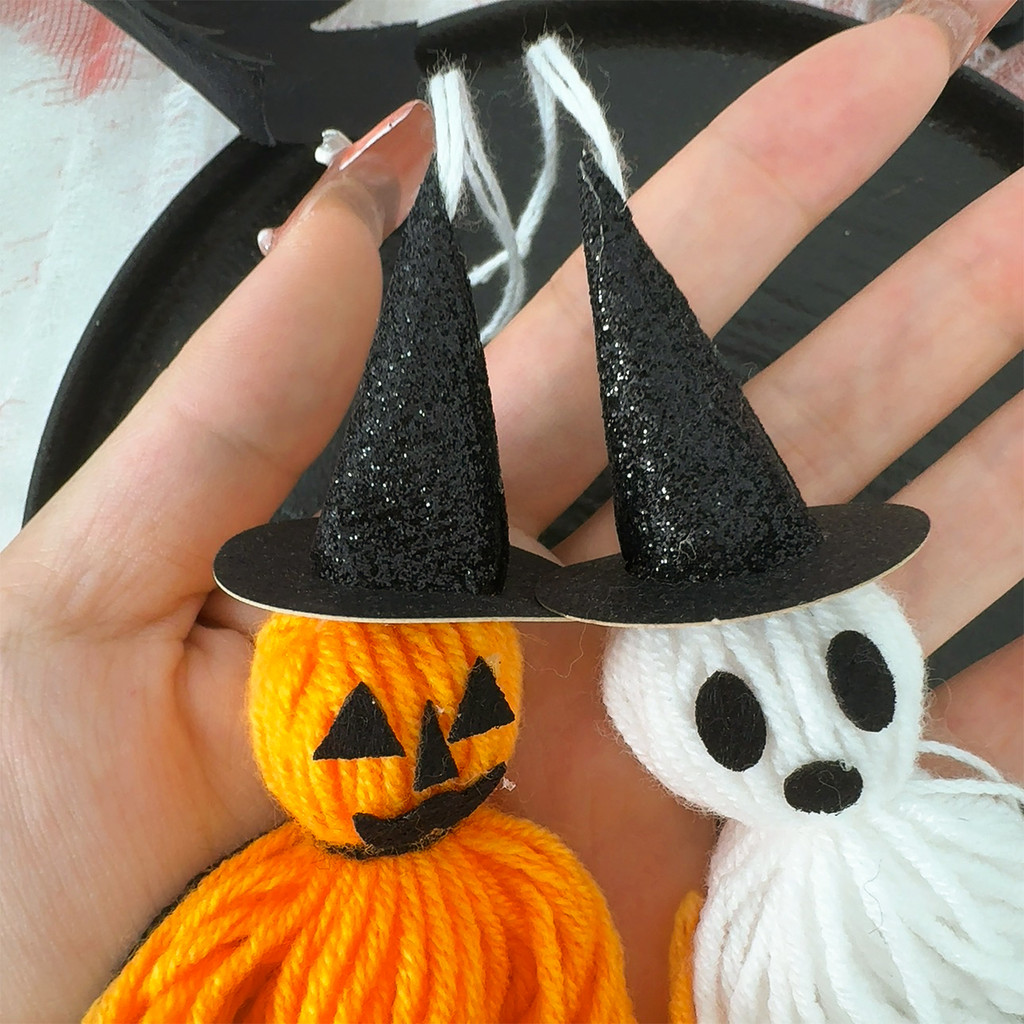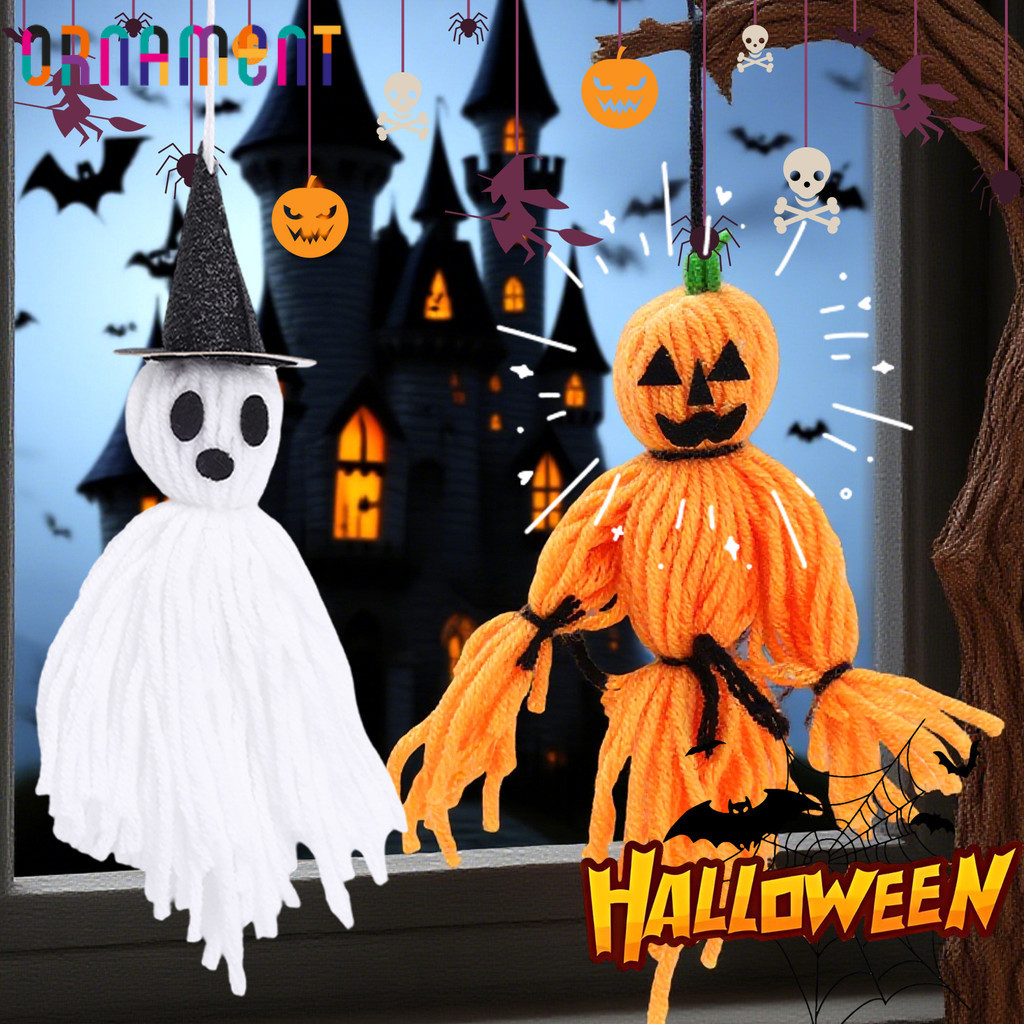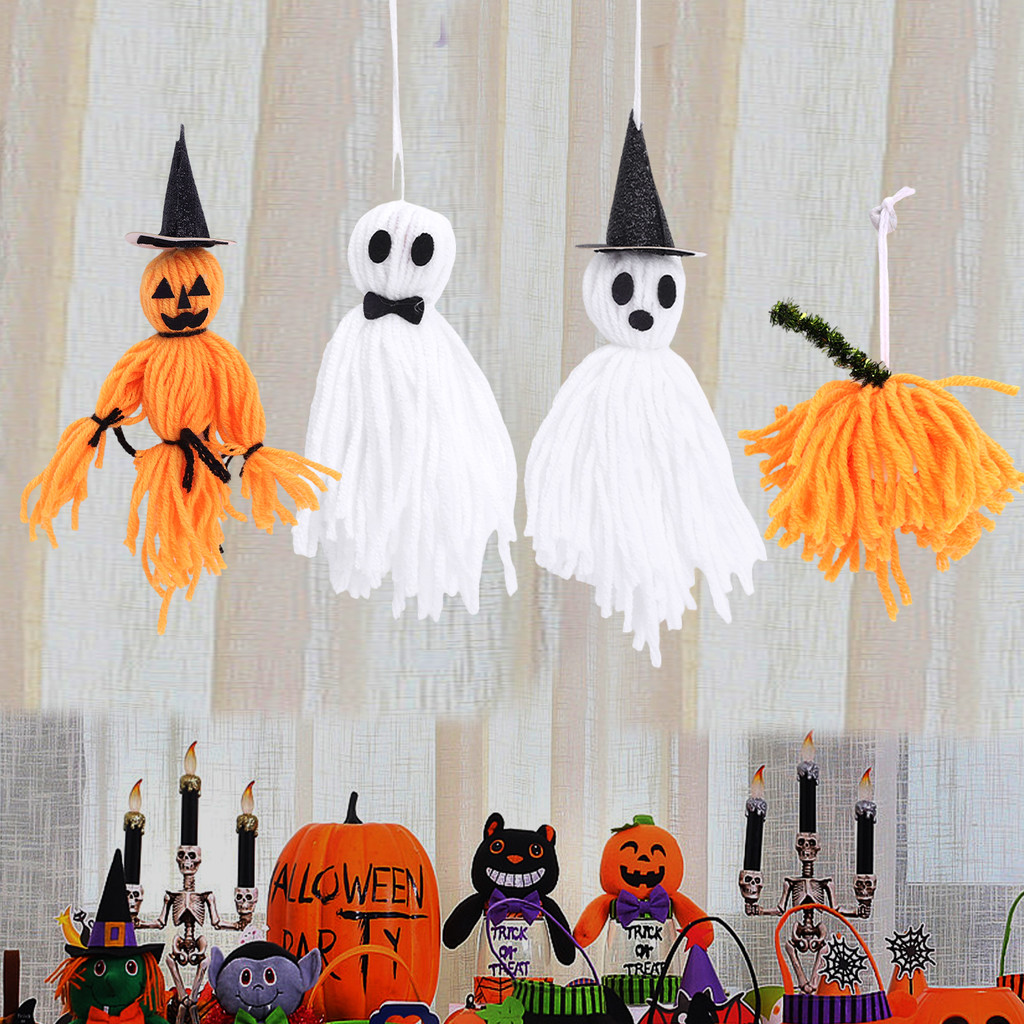 [H&L]1/2/4PCS ชุดตกแต่งสักหลาดฮาโลวีน – Pumpkin Man, Ghost, Witch Hat & Bow Accessories, ของแต่งบ้านที่ปลอดภัยพร้อมเชือกแขวน