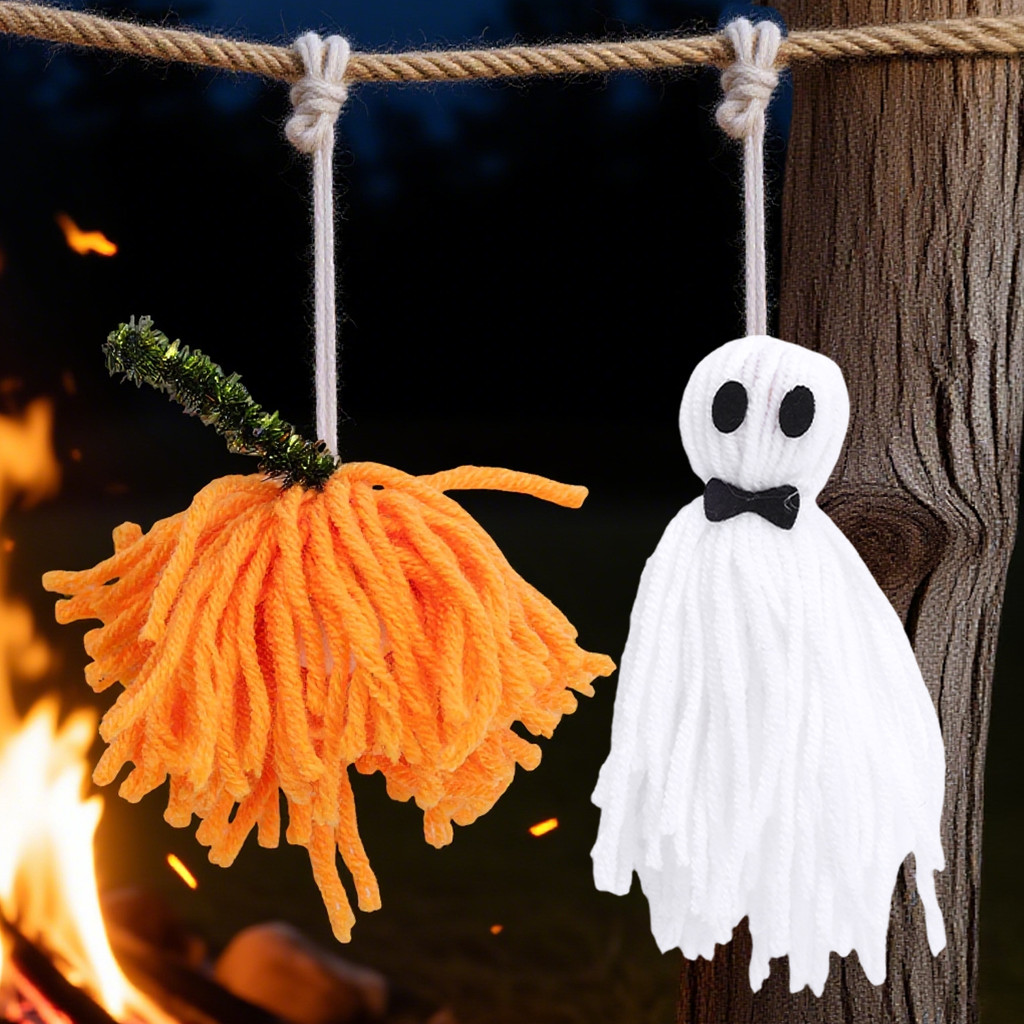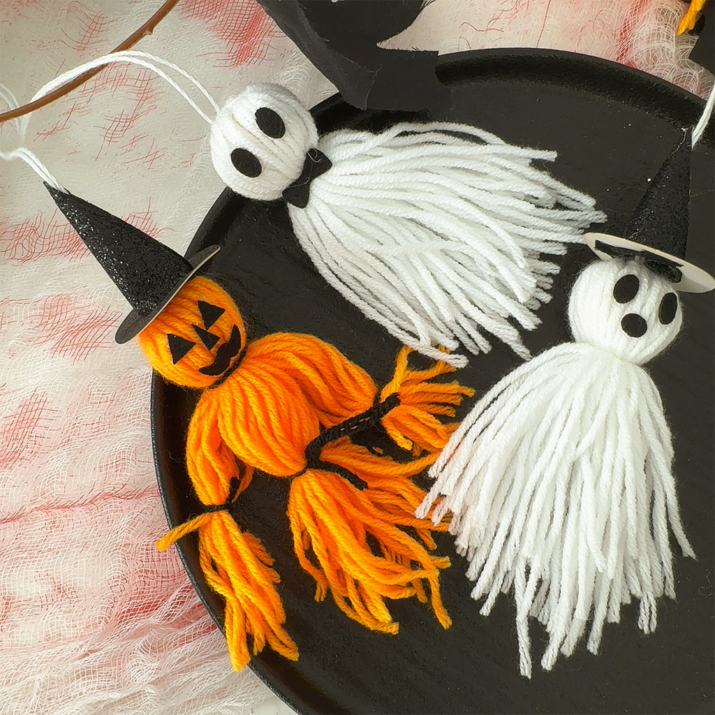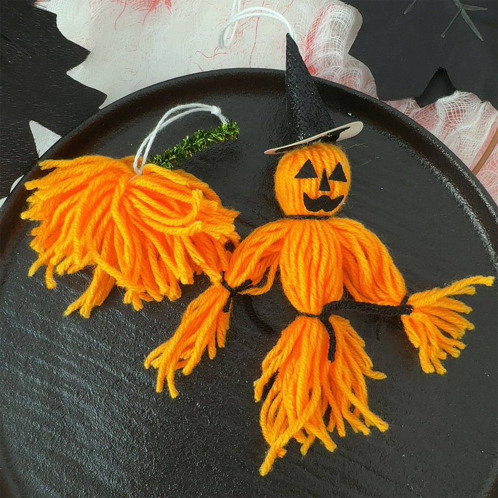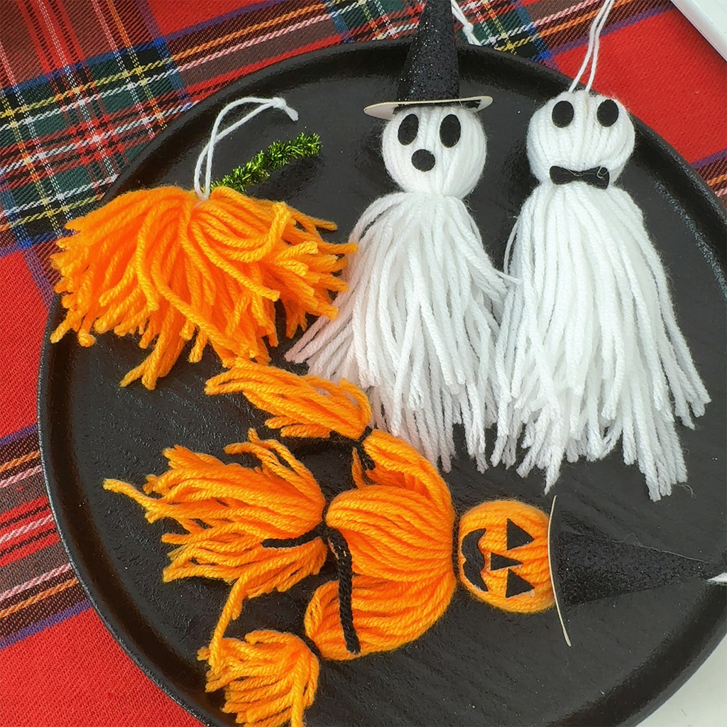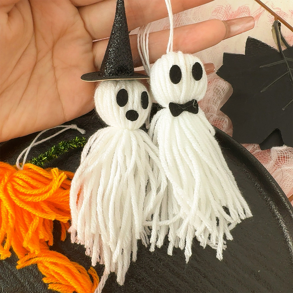 [H&L]1/2/4PCS ชุดตกแต่งสักหลาดฮาโลวีน – Pumpkin Man, Ghost, Witch Hat & Bow Accessories, ของแต่งบ้านที่ปลอดภัยพร้อมเชือกแขวน