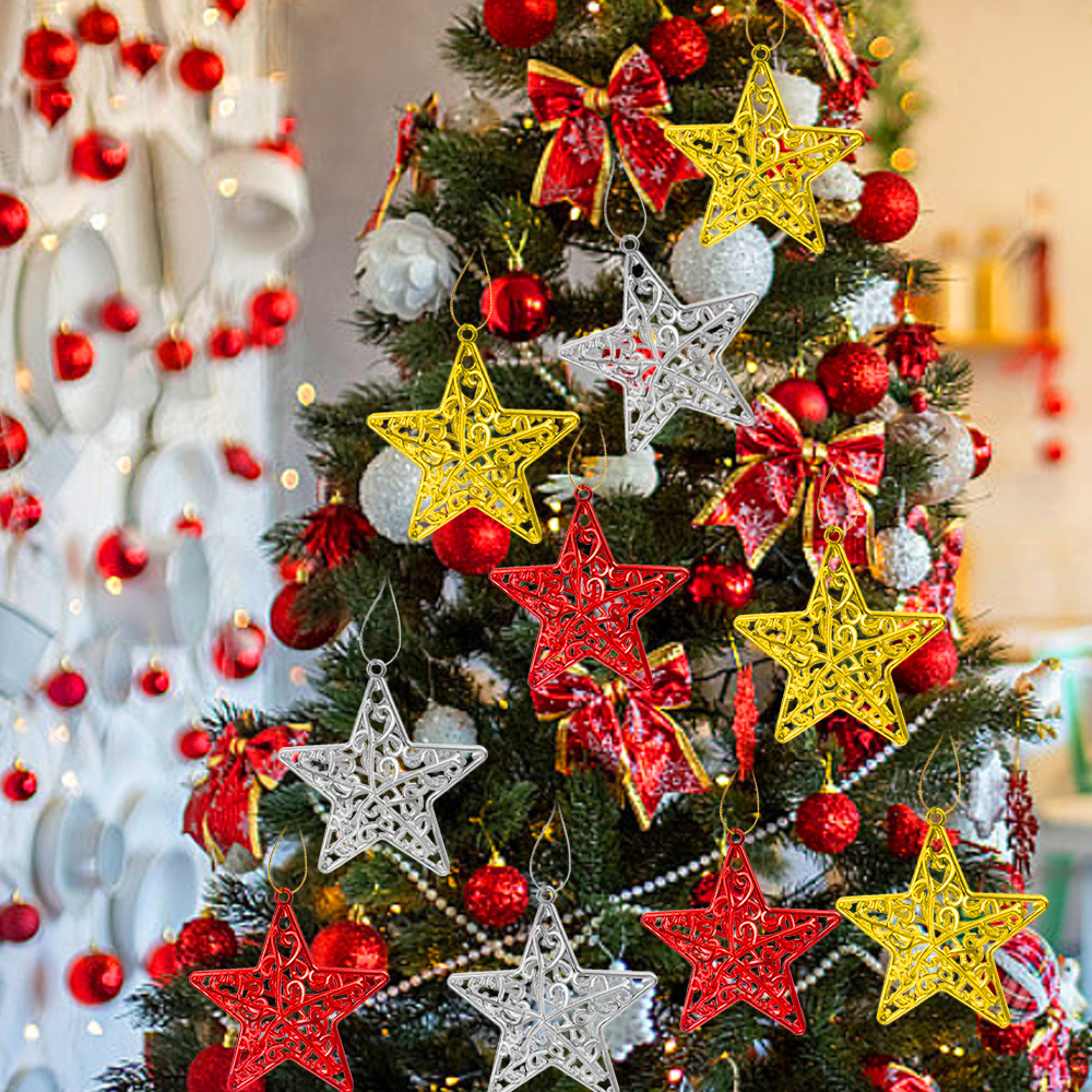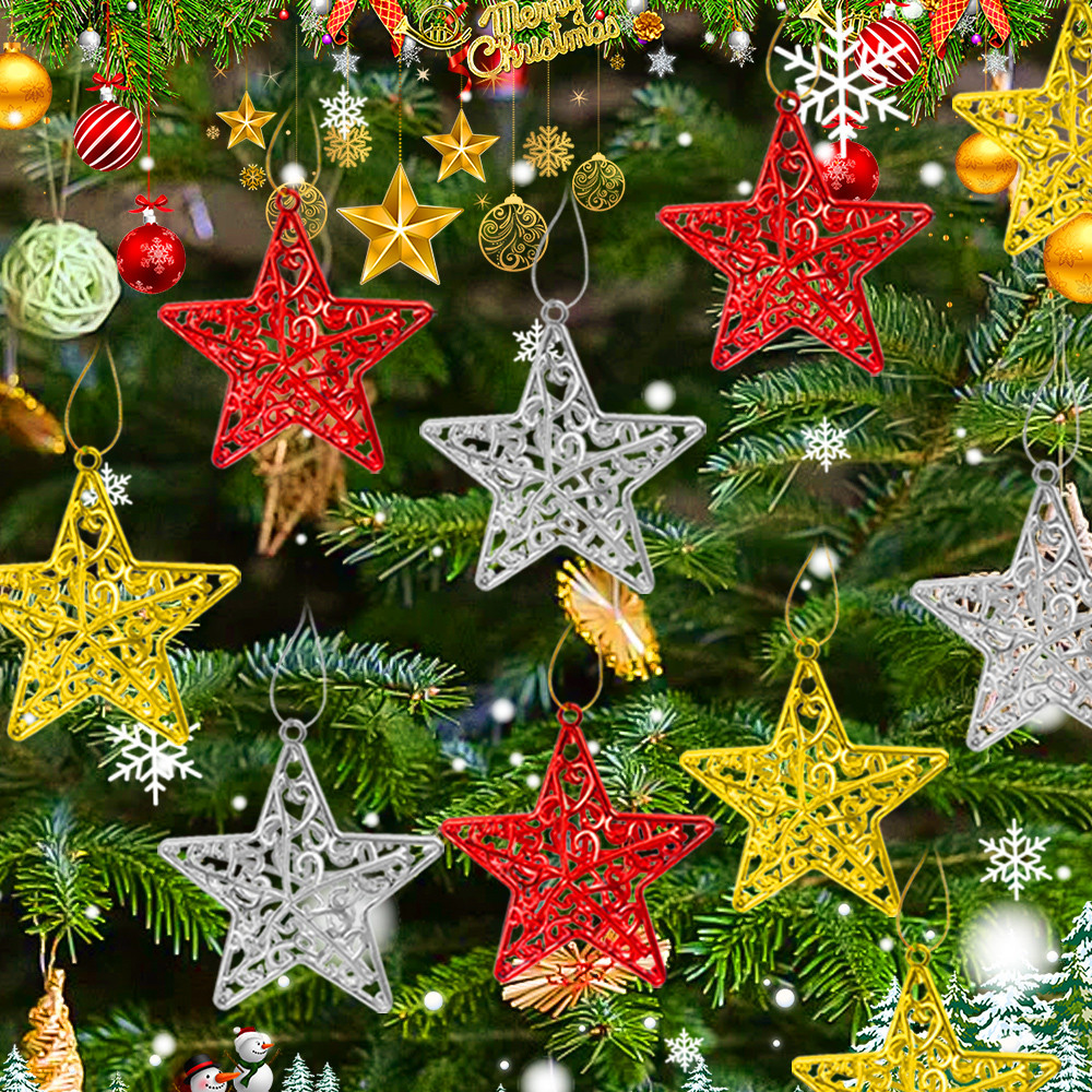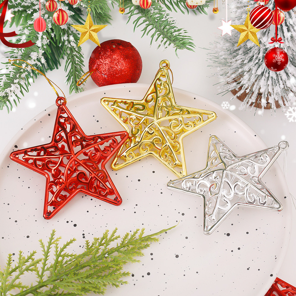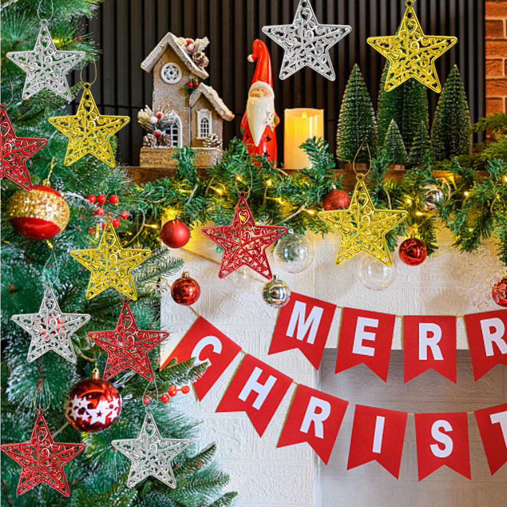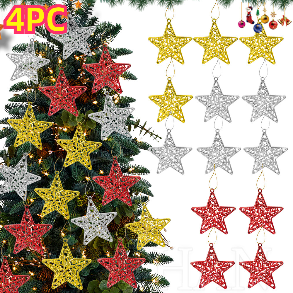 [3-5 วันมาถึง] 4 ชิ้น/แพ็คคริสต์มาส Hollow Pentagram จี้ – ตกแต่งต้นคริสต์มาส 3D Star – ต้นคริสต์มาสแขวนเครื่องประดับอุปกรณ์เสริม – จี้สีแดงทองคุณภาพสูงสําหรับงานปาร์ตี้เทศกาล