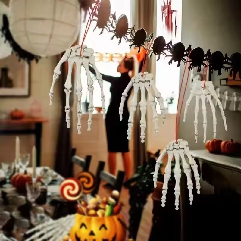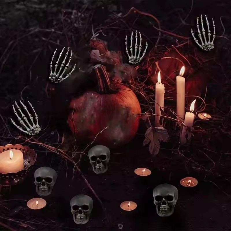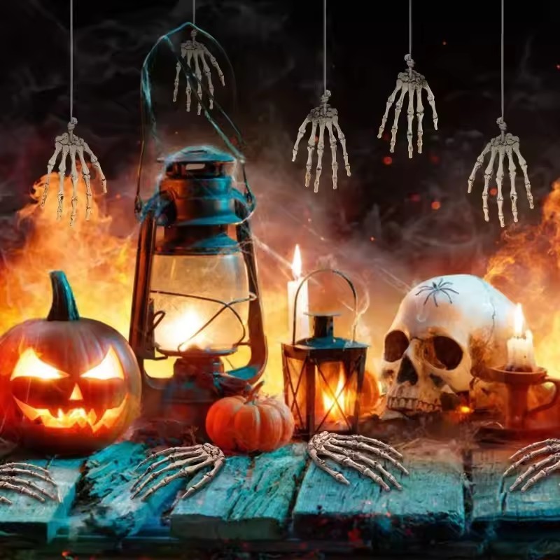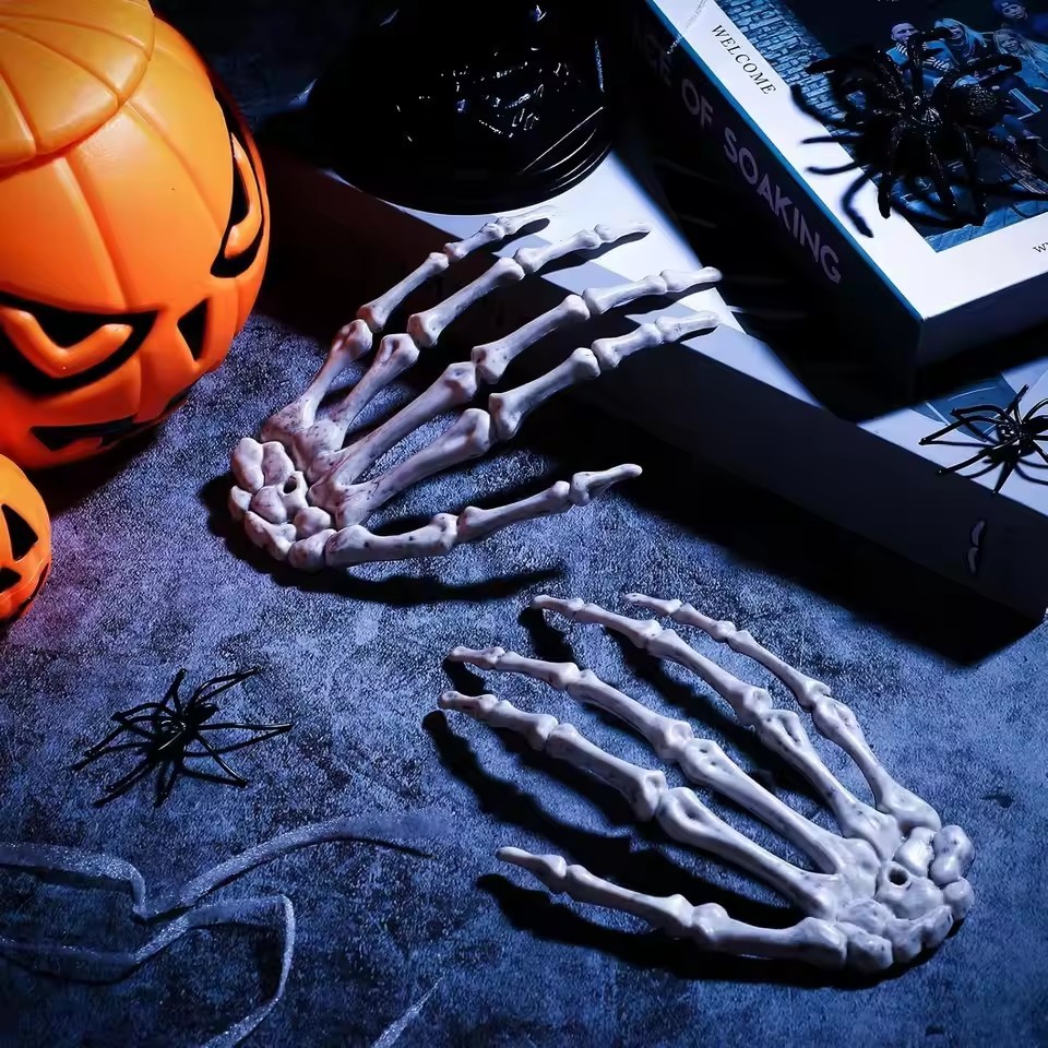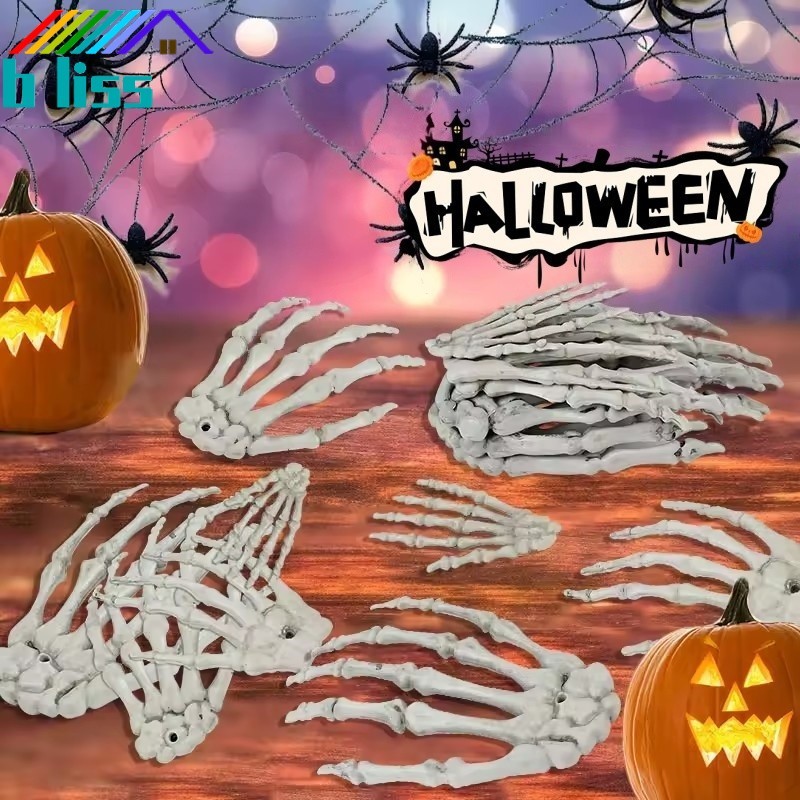 [บ้าน]ตกแต่งมือโครงกระดูกฮาโลวีน-อุปกรณ์ประกอบฉากกระดูกที่สมจริงสําหรับงานปาร์ตี้บ้านผีสิงตกแต่งสยองขวัญพลาสติกทนทาน(1/2/4ชิ้น)