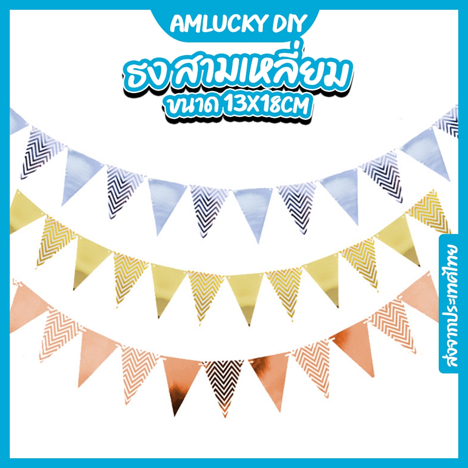 [ส่งจากไทย] ธงสามเหลี่ยม_ธงราว_ธงตกแต่ง_13x18cm [ร้าน Amlucky balloon]