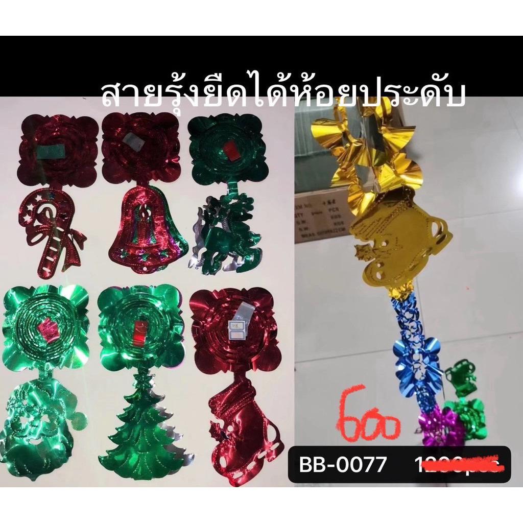 (ยกโหล 12 ชิ้น) No.1573 สายรุ้ง ยืดประดับ สายรุ้ง ปีใหม่ คริสต์มาส ตกแต่งต้นคริสต์มาสคละสี เลือกแบบ ได้ 12 ชิ้น