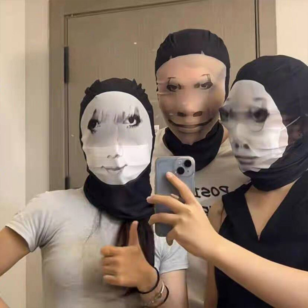 หน้ากากใบหน้าที่สมจริงตาข่ายแพคเกจอิโมติคอนคนดังทางอินเทอร์เน็ตหมวกหมวกตลกสําหรับคอสเพลย์อุปกรณ์ประกอบฉากเครื่องแต่งกายแปลกหน้าก