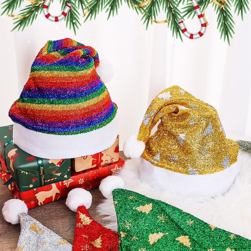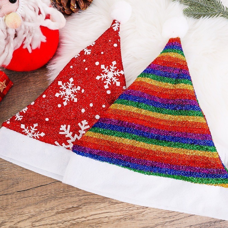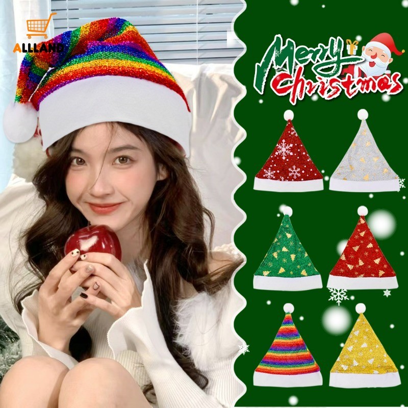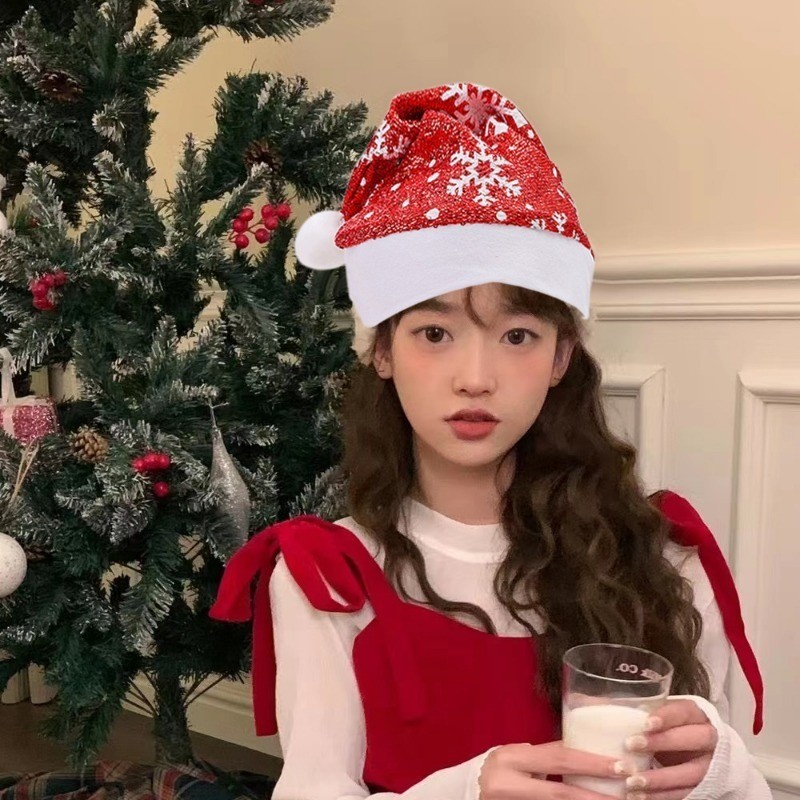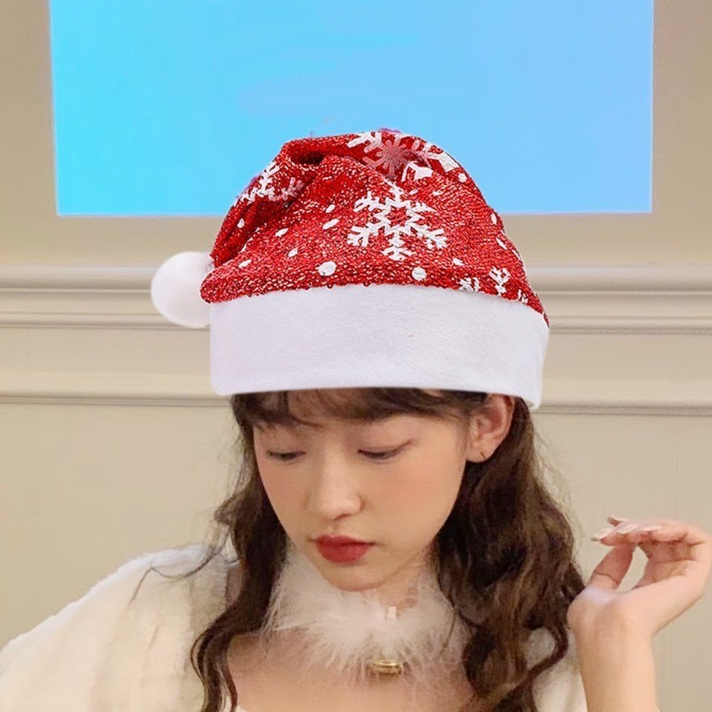 หมวกคริสต์มาสสําหรับผู้ใหญ่ – หมวกลายต้นคริสต์มาสเกล็ดหิมะเลื่อม – หมวกผ้ากํามะหยี่นุ่มสุขสันต์วันคริสต์มาสตกแต่งปาร์ตี้ปีใหม่