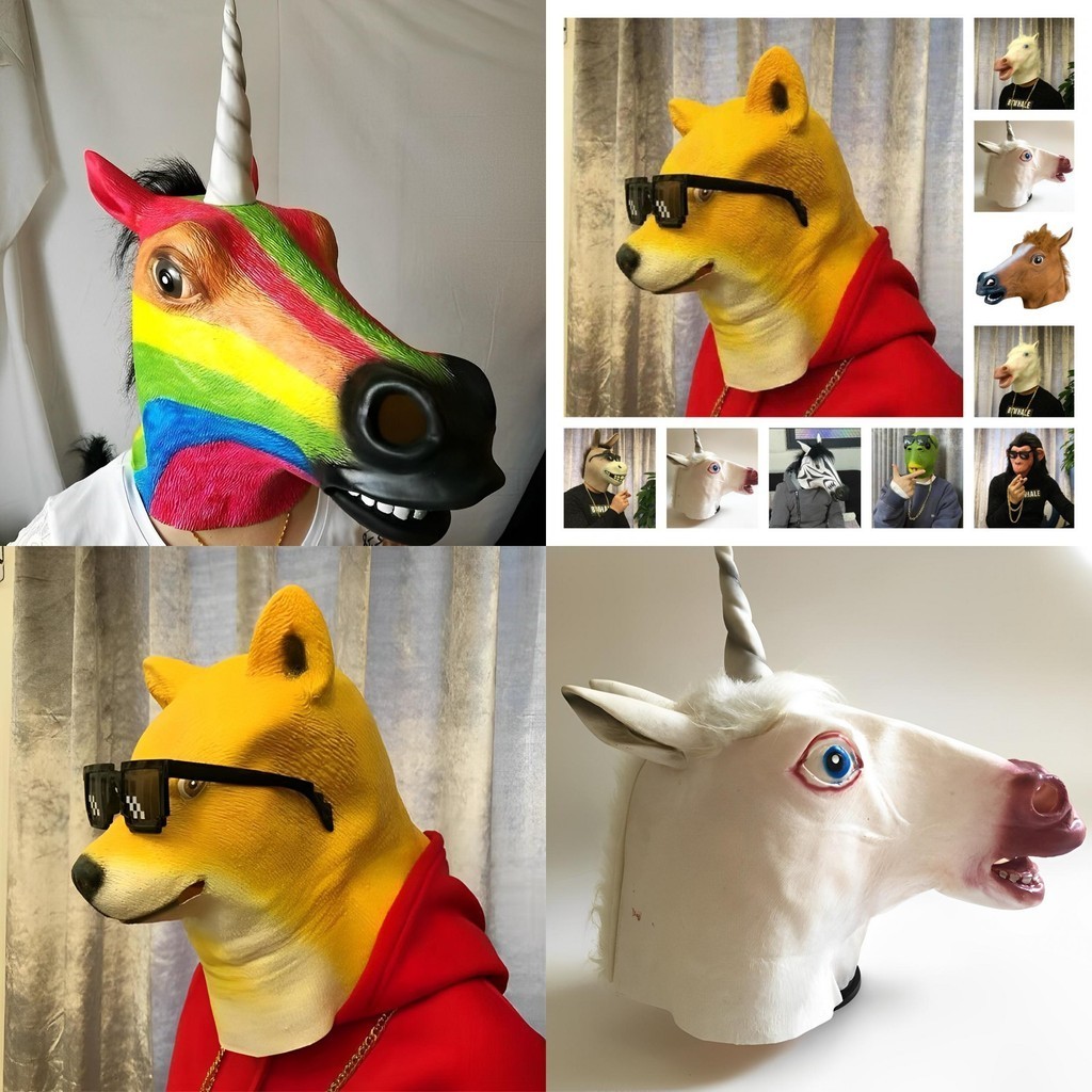 หน้ากากหัวม้าตลก และตลก สําหรับปาร์ตี้ฮาโลวีน