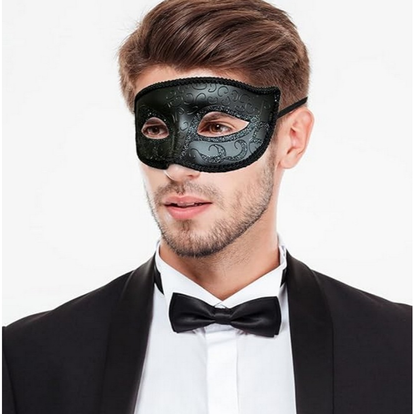 หน้ากากเแฟนซี สีดำ หน้ากากผู้ชาย หน้ากากเจ้าชาย สุดเทห์ ออกงาน ปาร์ตี้ ปลอมตัว Classic Black Party Mask พร้อมส่งจากไทย