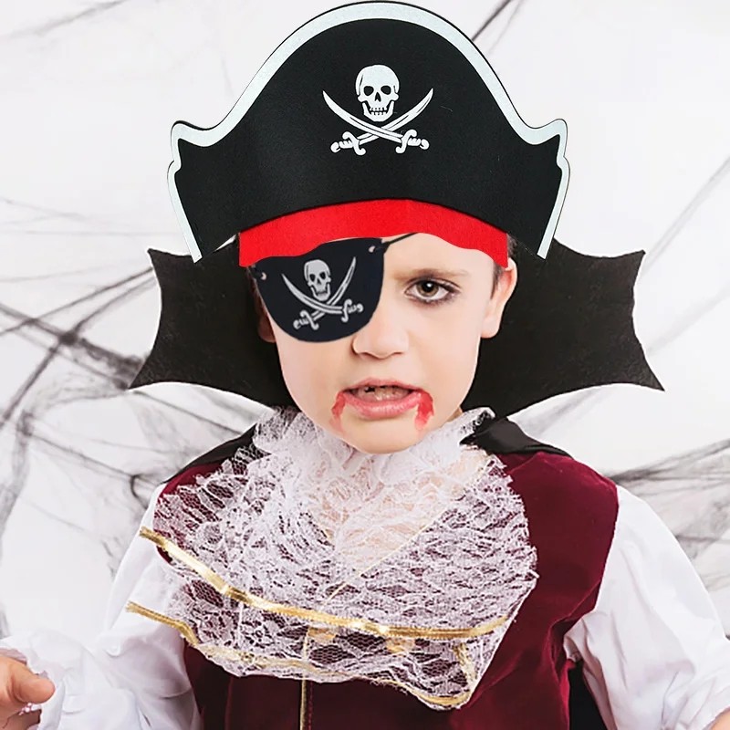 ฮาโลวีนเด็กปาร์ตี้บทบาทเล่นแคริบเบียนสีดํารู้สึกโจรสลัดหมวกอุปกรณ์เสริมตลก